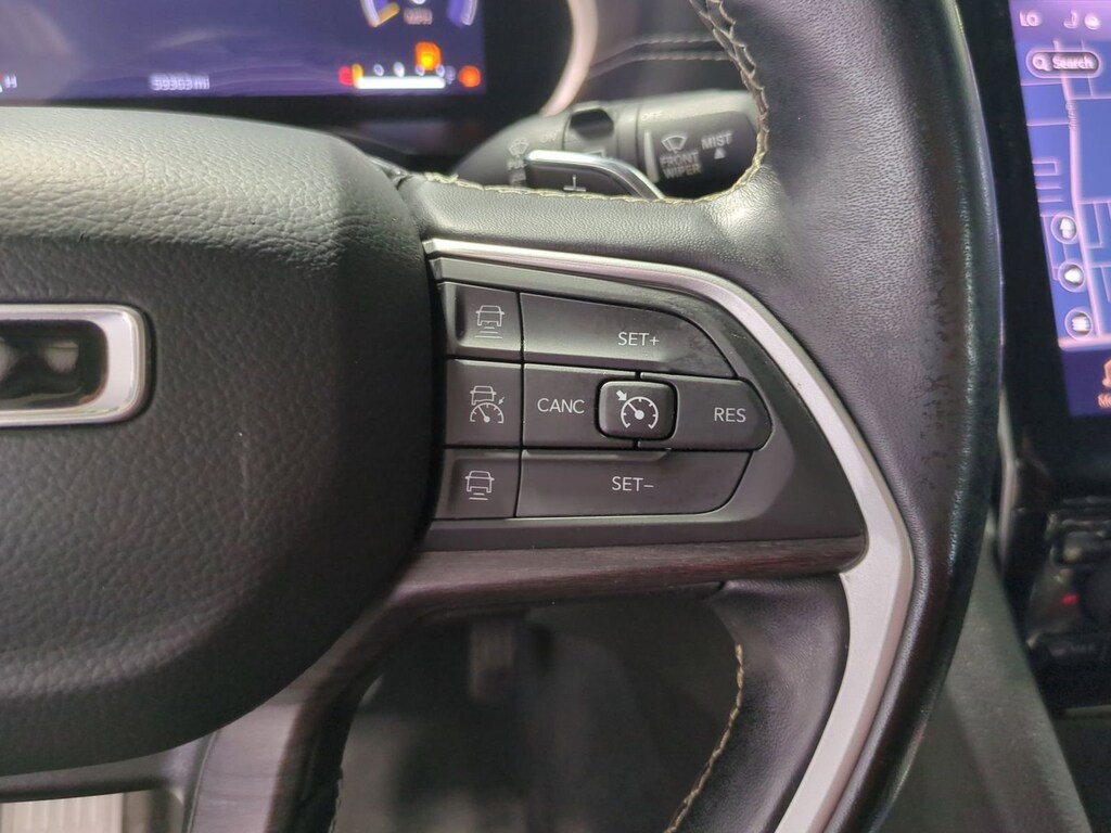 First-class accommodations greet you in our Limited cabin, where you and your crew are pampered by heated Capri leather front and second-row seats, a versatile third row, a heated leather steering wheel, tri-zone automatic climate control, soft-touch surfaces, keyless entry/ignition, and remote start. Staying connected is a top priority for today's drivers, so Jeep supplies a 10.25-inch digital instrument cluster, a 10.1-inch touchscreen, full-color navigation, wireless Android Auto®/Apple CarPlay®, WiFi compatibility, Bluetooth®, and premium nine-speaker audio.