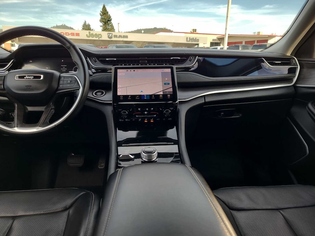 This vehicle is well equipped with many features including: Black Appearance Package (Gloss Black Exterior Accents, Molded In Color Black/Gloss Black Roof Rails, and Wheels: 20 x 8.5 Gloss Black Painted Aluminum), Luxury Tech Group II (2nd Row Manual Window Shades, Auto-Dimming Exterior Driver Mirror, Capri Leather Seats w/Perforated Inserts, Integrated Off-Road Camera, Intersection Collision Assist System, Memory Steering Column, ParkSense Front/Rear Park Assist w/Stop, Passive Entry - Front/Rear Doors, Liftgate, Power Tilt/Telescope Steering Column, Rain Sensitive Windshield Wipers, Rear Back Up Camera Washer, Rearview Autodim Digital Display Mirror, Surround View Camera System, Ventilated Front Seats, and Wireless Charging Pad), Quick Order Package 22E, 3rd row seats: split-bench, 506 Watt Amplifier, 9 Amplified Speakers w/Subwoofer, Air Conditioning, Automatic temperature control, GPS Navigation, Memory seat, Power driver seat, Power Liftgate, Power steering, Power windows, Remote keyless entry, and Steering wheel mounted audio controls. CARFAX One-Owner. Clean CARFAX.