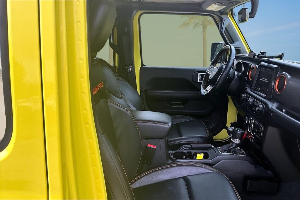 FRESH OIL CHANGE, 240 Amp Alternator, 4-Wheel Disc Brakes, 4.10 Rear Axle Ratio, 9 Speakers, 97 MPH Vehicle Max Speed Calibration, ABS brakes, Air Conditioning, Alloy wheels, AM/FM radio: SiriusXM, Apple CarPlay/Android Auto, Auto-dimming Rear-View mirror, Automatic temperature control, Body Color 3-Piece Hard Top, Body Color Fender Flares (2-Piece), Brake assist, Class IV Receiver Hitch, Cold Weather Group, Compass, Delay-off headlights, Driver door bin, Driver vanity mirror, Dual front impact airbags, Dual front side impact airbags, Electronic Stability Control, Emergency communication system, Freedom Panel Storage Bag, Front anti-roll bar, Front Bucket Seats, Front Center Armrest w/Storage, Front dual zone A/C, Front fog lights, Front License Plate Bracket, Front reading lights, Fully automatic headlights, Garage door transmitter, Heated door mirrors, Heated Front Seats, Heated Steering Wheel, Heavy Duty Suspension w/Gas Shocks, Heavy-Duty Engine Cooling, Illuminated entry, Integrated roll-over protection, Leather steering wheel, Low tire pressure warning, MOPAR All-Weather Slush Mats, Navigation System, No Soft Top, Occupant sensing airbag, Outside temperature display, Panic alarm, ParkView Rear Back-Up Camera, Passenger door bin, Passenger vanity mirror, Power door mirrors, Power steering, Power windows, Premium Cloth Seats w/Sport Bolsters, Quick Order Package 24D Mojave, Radio data system, Radio: Uconnect 4C Nav w/8.4 Display, Rear anti-roll bar, Rear reading lights, Rear Sliding Window, Rear Window Defroster, Remote keyless entry, Security system, Speed control, Split folding rear seat, Steering wheel mounted audio controls, Tachometer, Telescoping steering wheel, Tilt steering wheel, Traction control, Trailer Hitch Zoom, Trailer Tow Package, Trip computer, Variably intermittent wipers, Voltmeter, Wheels: 17 x 7.5 Low Gloss Black Aluminum. High Velocity Clearcoat 2023 Jeep Gladiator Mojave 4WD 8-Speed Automatic 3.6L V6 24V VVT