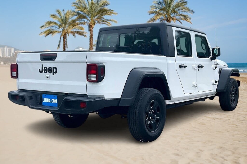 FRESH OIL CHANGE, 3.73 Rear Axle Ratio, 4-Wheel Disc Brakes, 4G LTE Wi-Fi Hot Spot, 8 Speakers, ABS brakes, Air Conditioning, AM/FM radio, Apple CarPlay, Apple CarPlay/Android Auto, Black 3-Piece Hard Top, Brake assist, Cloth Low-Back Bucket Seats, Compass, Delay-off headlights, Driver door bin, Driver vanity mirror, Dual front impact airbags, Dual front side impact airbags, Electronic Stability Control, Emergency communication system, Freedom Panel Storage Bag, Front anti-roll bar, Front Bucket Seats, Front Center Armrest w/Storage, Front fog lights, Front License Plate Bracket, Front reading lights, Google Android Auto, GPS Antenna Input, Integrated Center Stack Radio, Integrated roll-over protection, Integrated Voice Command w/Bluetooth, Low tire pressure warning, MOPAR All-Weather Slush Mats, No Soft Top, Normal Duty Suspension, Occupant sensing airbag, Outside temperature display, ParkView Rear Back-Up Camera, Passenger door bin, Passenger vanity mirror, Power steering, Quick Order Package 24B Sport, Radio data system, Radio: Uconnect 4 w/7 Display, Rear anti-roll bar, Rear reading lights, Rear Sliding Window, Rear Window Defroster, Speed control, Split folding rear seat, Steering wheel mounted audio controls, Tachometer, Telescoping steering wheel, Tilt steering wheel, Traction control, Trip computer, USB Host Flip, Variably intermittent wipers, Wheels: 17 x 7.5 Black Steel Styled. Odometer is 13178 miles below market average! Bright White Clearcoat 2023 Jeep Gladiator Sport 4WD 8-Speed Automatic 3.6L V6 24V VVT