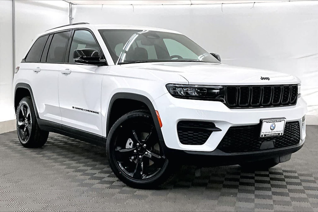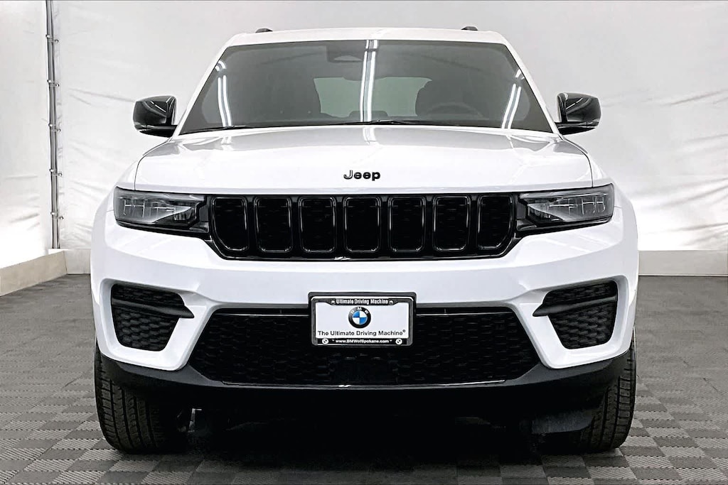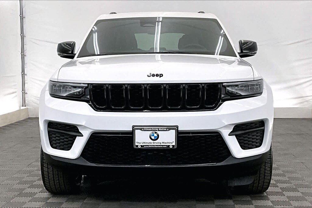 CLEAN CARFAX!!!! Bright White Clearcoat 2023 Jeep Grand Cherokee Altitude 4WD 8-Speed Automatic 3.6L V6 24V VVT 4WD, 115-Volt Auxiliary Power Outlet, 3.45 Rear Axle Ratio, 4-Wheel Disc Brakes, 6 Speakers, ABS brakes, Air Conditioning, Alloy wheels, AM/FM radio: SiriusXM with 360L, Anti-whiplash front head restraints, Automatic temperature control, Brake assist, Bumpers: body-colour, Capri Leatherette Seats w/Suede, Cloth Seats, Compass, Delay-off headlights, Driver door bin, Driver vanity mirror, Dual front impact airbags, Dual front side impact airbags, Electronic Stability Control, Four wheel independent suspension, Front anti-roll bar, Front Bucket Seats, Front dual zone A/C, Front reading lights, Fully automatic headlights, Gloss Black Roof Rails, Heated door mirrors, Heated front seats, Heated steering wheel, Illuminated entry, Knee airbag, Low tire pressure warning, Normal-Duty Suspension, Occupant sensing airbag, Outside temperature display, Overhead airbag, Overhead console, Panic alarm, ParkView Rear Back-Up Camera, Passenger door bin, Passenger vanity mirror, Power door mirrors, Power driver seat, Power steering, Power windows, Quick Order Package 23B Altitude, Radio data system, Radio: Uconnect 5 w/8.4 Flush Display, Rain-Sensing Windshield Wipers, Rear anti-roll bar, Rear reading lights, Rear window defroster, Rear window wiper, Remote keyless entry, Security system, Selectable Tire Fill Alert, Speed control, Speed-Sensitive Wipers, Split folding rear seat, Spoiler, Steering wheel mounted audio controls, Tachometer, Telescoping steering wheel, Tilt steering wheel, Traction control, Trip computer, Variably intermittent wipers, Voltmeter, Wheels: 17 x 6.5 Fully Painted Aluminum, Wheels: 20 x 8.0 Gloss Black Aluminum, 4WD.
