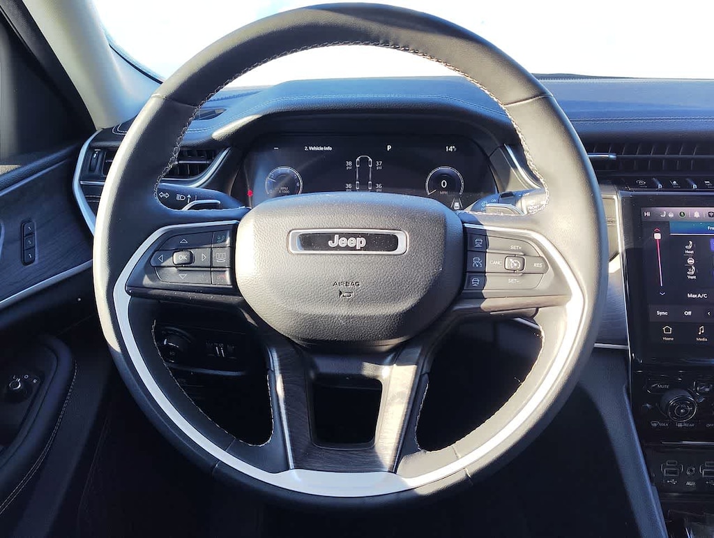 LUXURY TECH GROUP II Power Tilt/Telescope Steering Column, Integrated Off-Road Camera, Surround View Camera System, Rain Sensitive Windshield Wipers, ParkSense Front/Rear Park Assist w/Stop, Passive Entry - Front/Rear Doors, Liftgate, Wireless Charging Pad, Rear Back Up Camera Washer, Ventilated Front Seats, Auto Dim Exterior Driver Mirror, 2nd Row Manual Window Shades, Intersection Collision Assist System, Rearview Autodim Digital Display Mirror, Memory Steering Column, REAR SEAT VIDEO GROUP I Video USB Port, Seatback Video Screens, Amazon Fire TV Built-In, WHEELS: 18 X 8.0 POLISHED/PAINTED ALUMINUM, TRAILER TOW GROUP (B) Rear Load Leveling Suspension, Full Size Spare Tire, Heavy Duty Engine Cooling, 18 Full-Size Steel Spare Wheel, Automatic Headlamp Leveling System, Trailer Hitch Zoom, 220 Amp Alternator, TRANSMISSION: 8-SPEED AUTOMATIC (8HP50), ENGINE: 3.6L V6 24V VVT UPG I W/ESS (STD). Jeep Limited with Silver Zynith exterior and Global Black interior features a V6 Cylinder Engine with 293 HP at 6400 RPM*.