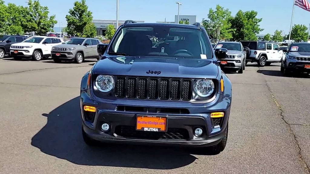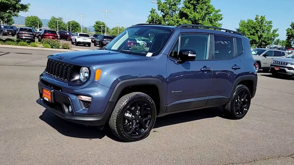 SUN/SOUND GROUP Premium Audio, Dual-Pane Panoramic Power Sunroof, CONVENIENCE GROUP I Leather Wrapped Steering Wheel, Windshield Wiper De-Icer, Rain Sensitive Windshield Wipers, Rear View Auto Dim Mirror, Heated Front Seats, Heated Steering Wheel, Power Adjust 8-Way Driver Seat, Power 2-Way Driver Lumbar Adjust, QUICK ORDER PACKAGE 22M ALTITUDE Engine: 1.3L I4 Turbo MAIR DI w/ESS, Transmission: 9-Speed 948TE Automatic, Remote Start System, Ambient LED Interior Lighting, Automatic Headlamps, Exterior Mirrors w/Supplemental Signals, Cornering Front Fog Lamps, Upgraded Exterior Color Mirror, Altitude Package, Gloss Black Grille-Gloss Black Xhairs, Cluster 7 TFT Color Display, Gloss Black Exterior Accents, Black Side Roof Rails, Premium-Wrapped Steering Wheel, Keyless Entry w/Panic Alarm, TRANSMISSION: 9-SPEED 948TE AUTOMATIC (STD), ENGINE: 1.3L I4 TURBO MAIR DI W/ESS (STD). Jeep Altitude with Slate Blue Pearlcoat exterior and Black interior features a 4 Cylinder Engine with 177 HP at 5750 RPM*.