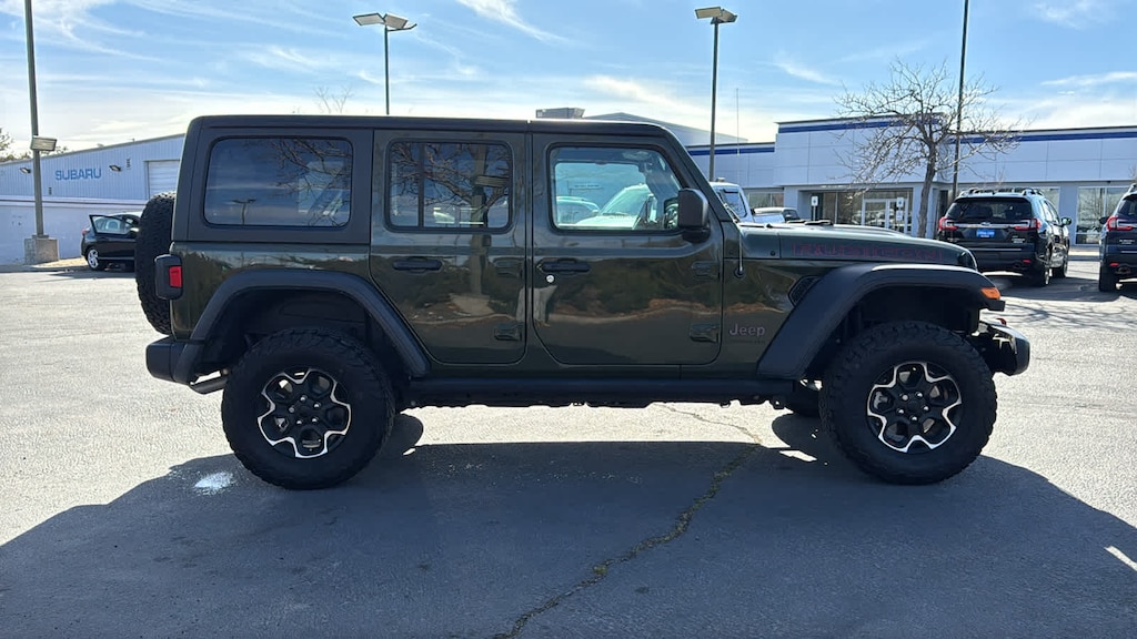 TRANSMISSION: 8-SPEED AUTOMATIC (850RE) Selec-Speed Control, BLACK 3-PIECE HARD TOP Freedom Panel Storage Bag, Rear Window Defroster, Rear Window Wiper/Washer, No Soft Top, ENGINE: 2.0L I4 DOHC DI TURBO W/ESS. Jeep Rubicon with Sarge Green Clearcoat exterior and Black interior features a 4 Cylinder Engine with 270 HP at 5250 RPM*.