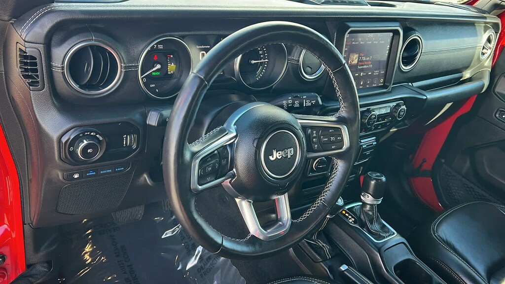 SKY 1-TOUCH POWER TOP Rear Window Defroster, Rear Window Wiper/Washer, Removable Rear Quarter Windows, Power Top Quarter Window Storage Bag, COLD WEATHER GROUP Heated Steering Wheel, Remote Start System, Heated Front Seats, SAFETY GROUP Blind Spot & Cross Path Detection, ParkSense Rear Park Assist System, ADVANCED SAFETY GROUP Adaptive Cruise Control w/Stop, Advanced Brake Assist, Auto High Beam Headlamp Control, Full Speed Forward Collision Warning Plus, TRANSMISSION: 8-SPEED AUTO 8P75PH PHEV (STD), ENGINE: 2.0L I4 DOHC DI TURBO PHEV (STD). Jeep Sahara with Firecracker Red Clearcoat exterior and Black interior features a 4 Cylinder Engine with 375 HP at 5250 RPM*.