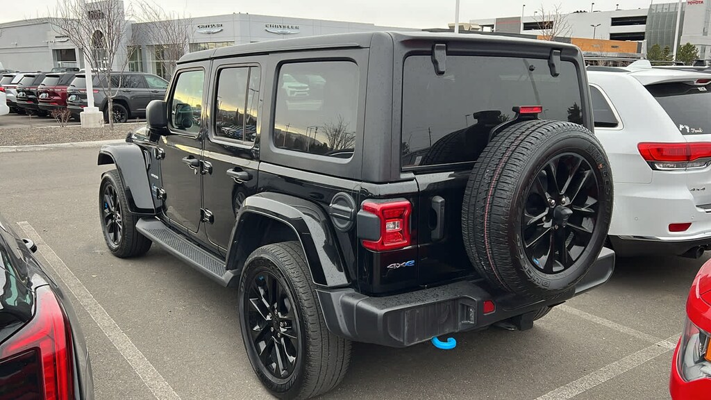 BLACK 3-PIECE HARD TOP Freedom Panel Storage Bag, Rear Window Defroster, Rear Window Wiper/Washer, COLD WEATHER GROUP Heated Steering Wheel, Remote Start System, Heated Front Seats, TRAILER TOW & AUX SWITCH GROUP Class II Receiver Hitch, 700 Amp Maintenance Free Battery, 7 & 4 Pin Wiring Harness, Auxiliary Switches, ANTI-SPIN DIFFERENTIAL REAR AXLE, TRANSMISSION: 8-SPEED AUTO 8P75PH PHEV (STD), ENGINE: 2.0L I4 DOHC DI TURBO PHEV (STD). Jeep Sahara with Black Clearcoat exterior and Black interior features a 4 Cylinder Engine with 375 HP at 5250 RPM*.