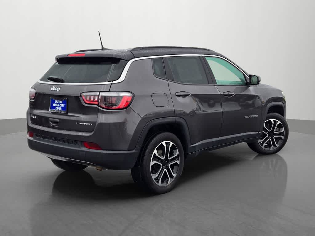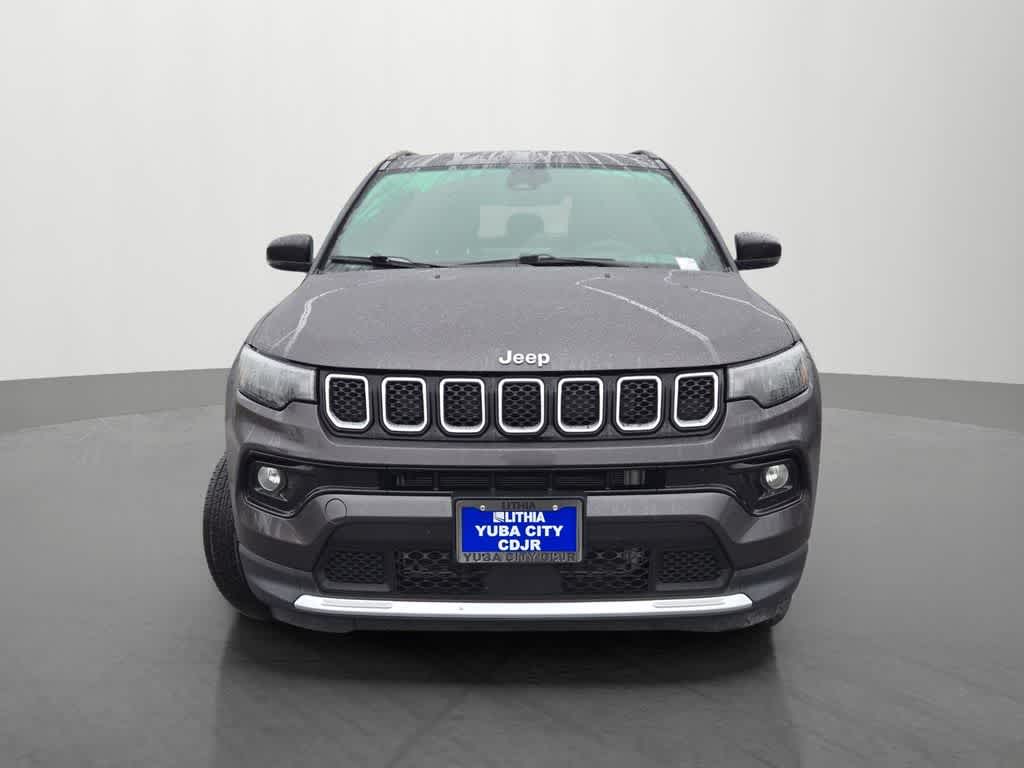 Yuba City Chrysler Dodge Jeep RAM is pleased to present this 2024 Jeep Compass Limited for sale as part of our hand-selected preowned lineup. This vehicle is finished in the Black exterior and Black interior. Factory options include: Quick Order Package 29G Limited, 4WD, 10.1 Touchscreen Display, 3.73 Final Drive Ratio, 4-Wheel Disc Brakes, 4G LTE Wi-Fi Hot Spot, 6 Speakers, ABS brakes, Air Conditioning, Alloy wheels, AM/FM radio: SiriusXM, Auto High-beam Headlights, Auto-dimming Rear-View mirror, Automatic temperature control, Brake assist, Bumpers: body-color, Compass, Delay-off headlights, Disassociated Touchscreen Display, Driver door bin, Driver vanity mirror, Dual front impact airbags, Dual front side impact airbags, Electronic Stability Control, Emergency communication system: Jeep Connect, For Details, Visit DriveUconnect.com, For More Info, Call 800-643-2112, Four wheel independent suspension, Front anti-roll bar, Front Bucket Seats, Front Center Armrest w/Storage, Front dual zone A/C, Front fog lights, Front License Plate Bracket, Front reading lights, Fully automatic headlights, Global Telematics Box Module (TBM), Heated door mirrors, Heated front seats, Heated steering wheel, Illuminated entry, Knee airbag, Leather Shift Knob, Leather steering wheel, Leatherette Seats, Low tire pressure warning, Occupant sensing airbag, Outside temperature display, Overhead airbag, Overhead console, Panic alarm, ParkView Rear Back-Up Camera, Passenger door bin, Passenger vanity mirror, Power door mirrors, Power driver seat, Power steering, Power windows, Radio: Uconnect 5 w/10.1 Display, Rain sensing wipers, Rear anti-roll bar, Rear seat center armrest, Rear window defroster, Rear window wiper, Remote keyless entry, Security system, SiriusXM Guardian - Included Trial (B), SiriusXM Radio Service, Speed control, Split folding rear seat, Spoiler, Steering wheel mounted audio controls, Tachometer, Telescoping steering wheel, Tilt steering wheel, Traction control, Trip computer, Turn signal indicator mirrors, Variably intermittent wipers, and Wheels: 18 x 7 Painted Diamond Cut Aluminum