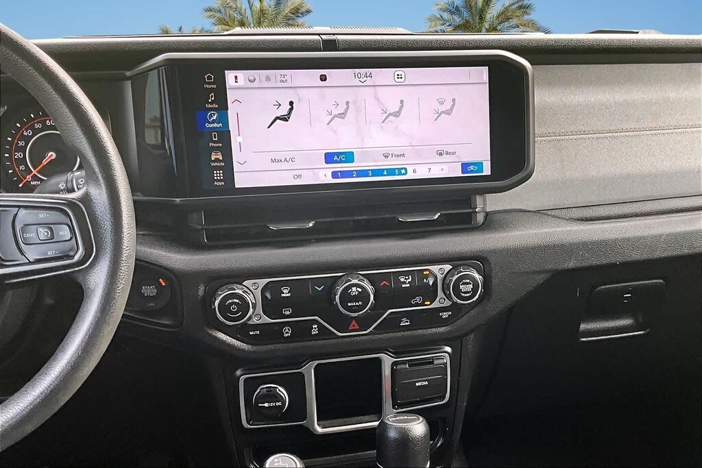 FRESH OIL CHANGE, 110 MPH Vehicle Max Speed Calibration, 12.3 Touchscreen Display, 3.73 Rear Axle Ratio, 4-Wheel Disc Brakes, 4G LTE Wi-Fi Hot Spot, 8 Speakers, ABS brakes, Air Conditioning, Alexa Built-In, AM/FM radio: SiriusXM with 360L, Apple CarPlay, Apple CarPlay/Android Auto, Black 3-Piece Hard Top, Brake assist, Cloth Low-Back Bucket Seats, Compass, Connectivity - US/Canada, Delay-off headlights, Disassociated Touchscreen Display, Driver door bin, Driver vanity mirror, Dual front impact airbags, Dual front side impact airbags, Electronic Stability Control, Emergency communication system: Jeep Connect, Front anti-roll bar, Front Bucket Seats, Front Center Armrest w/Storage, Front fog lights, Front License Plate Bracket, Front reading lights, Google Android Auto, Integrated Center Stack Radio, Integrated roll-over protection, Low tire pressure warning, Manufacturers Statement of Origin (DISC), MOPAR All-Weather Slush Mats, Normal Duty Suspension, Occupant sensing airbag, Outside temperature display, Overhead airbag, ParkView Rear Back-Up Camera, Passenger door bin, Passenger vanity mirror, Power steering, Quick Order Package 24B Sport, Radio data system, Radio: Uconnect 5 w/12.3 Display, Rear anti-roll bar, Rear reading lights, SiriusXM Radio Service, SiriusXM w/360L, Speed control, Split folding rear seat, Steering wheel mounted audio controls, Tachometer, Telescoping steering wheel, Tilt steering wheel, Traction control, Trip computer, USB Host Flip, Variably intermittent wipers, Voltmeter, Wheels: 17 x 7.5 Black Steel Styled. Odometer is 1300 miles below market average! Black Clearcoat 2024 Jeep Gladiator Sport 4WD 8-Speed Automatic 3.6L V6 24V VVT