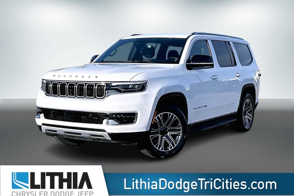 Lithia Chrysler Dodge Jeep Ram of Tri-Cities is pleased to offer this Bright White Clearcoat 2024 Jeep Wagoneer Series II for purchase, this vehicle is well equipped with many features including:Quick Order Package 25J, 10 Speakers, 118 MPH Maximum Speed Calibration, 3.55 Rear Axle Ratio, 3rd row seats: bench, 4-Wheel Disc Brakes, ABS brakes, Adjustable pedals, Air Conditioning, Alloy wheels, AM/FM radio: SiriusXM with 360L, Anti-whiplash front head restraints, Apple CarPlay/Android Auto, Audio memory, Auto-dimming door mirrors, Auto-dimming Rear-View mirror, Auto-leveling suspension, Automatic temperature control, Brake assist, Bumpers: body-color, Compass, Delay-off headlights, Driver door bin, Driver vanity mirror, Drivers Seat Mounted Armrest, Dual front impact airbags, Dual front side impact airbags, Electronic Stability Control, Emergency communication system: Wagoneer Connect, Exterior Parking Camera Rear, Four wheel independent suspension, Front anti-roll bar, Front Bucket Seats, Front Center Armrest w/Storage, Front dual zone A/C, Front fog lights, Front reading lights, Fully automatic headlights, Garage door transmitter, Genuine wood console insert, Genuine wood dashboard insert, Genuine wood door panel insert, Heated door mirrors, Heated front seats, Heated rear seats, Heated steering wheel, Illuminated entry, Knee airbag, Leather Trimmed Bucket Seats, Low tire pressure warning, Memory seat, Navigation System, Normal Duty Suspension, Occupant sensing airbag, Outside temperature display, Overhead airbag, Overhead console, Panic alarm, Passenger door bin, Passenger seat mounted armrest, Passenger vanity mirror, Pedal memory, Power adjustable front head restraints, Power door mirrors, Power driver seat, Power Liftgate, Power passenger seat, Power steering, Power windows, Radio data system, Radio: Uconnect 5 Nav w/10.1 Display, Rain sensing wipers, Rear air conditioning, Rear anti-roll bar, Rear dual zone A/C, Rear reading lights, Rear seat center armrest, Rear window defroster, Rear window wiper, Reclining 3rd row seat, Remote keyless entry, Security system, Speed control, Speed-sensing steering, Speed-Sensitive Wipers, Split folding rear seat, Steering wheel memory, Steering wheel mounted audio controls, Tachometer, Telescoping steering wheel, Tilt steering wheel, Traction control, Trip computer, Turn signal indicator mirrors, Variably intermittent wipers, Ventilated front seats, Voltmeter, and Wheels: 20 x 9.0 Premium 2 Aluminum. 2024 Jeep Wagoneer Series II