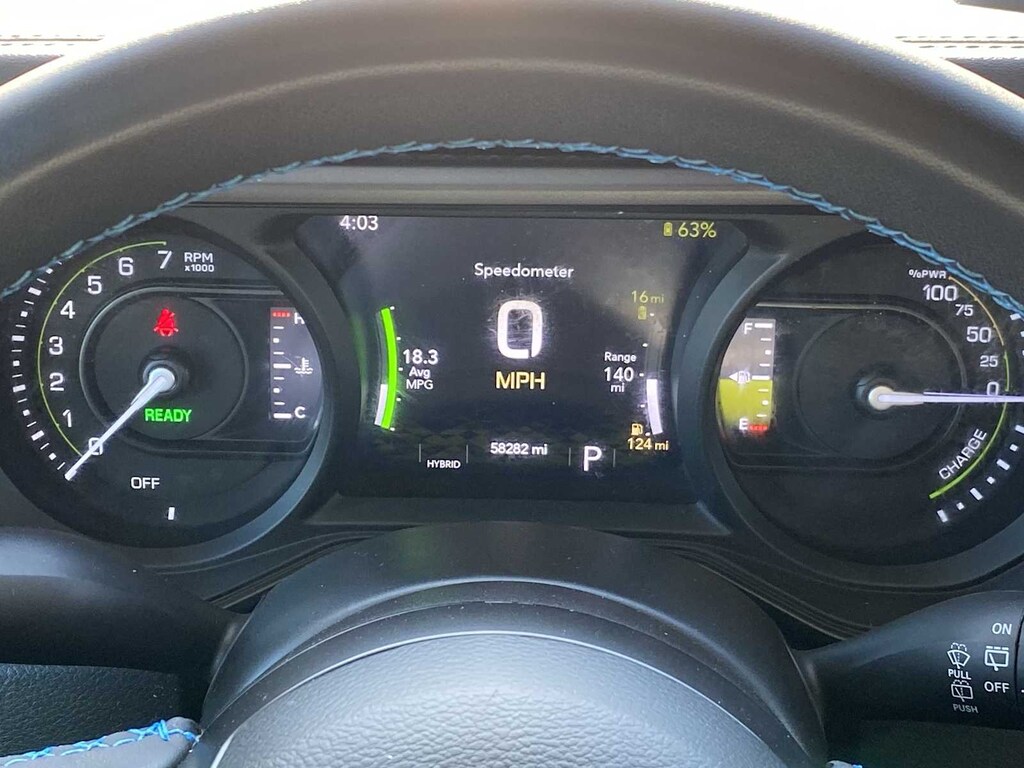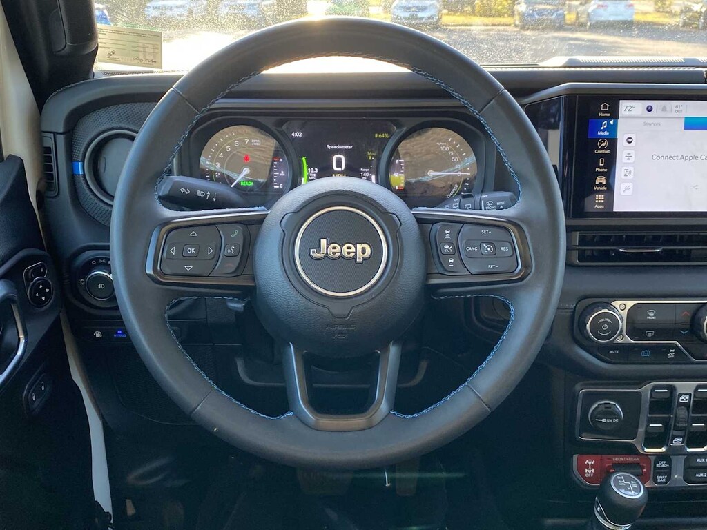 Wrangler Rubicon 4xe is nicely equipped with Quick Order Package 29V Rubicon, Wrangler Rubicon 4xe, 4D Sport Utility, 2.0L I4 DOHC, 8-Speed Automatic, 4WD, Bright White Clearcoat, Black w/Cloth Low-Back Bucket Seats, 12.3 Touchscreen Display, 4G LTE Wi-Fi Hot Spot, Apple CarPlay/Android Auto, Body Color 3-Piece Hard Top, 4-Wheel Disc Brakes, 8 Speakers, ABS brakes, Air Conditioning, Alloy wheels, AM/FM radio: SiriusXM, Automatic temperature control, Black 3-Piece Hard Top, Brake assist, Compass, Connectivity - US/Canada, Delay-off headlights, Disassociated Touchscreen Display, Driver door bin, Driver vanity mirror, Dual front impact airbags, Dual front side impact airbags, Electronic Stability Control, Emergency communication system: Jeep Connect, Freedom Panel Storage Bag, Front anti-roll bar, Front Bucket Seats, Front Center Armrest w/Storage, Front dual zone A/C, Front fog lights, Front License Plate Bracket, Front reading lights, Fully automatic headlights, Google Android Auto, Heated door mirrors, Illuminated entry, Integrated Center Stack Radio, Integrated roll-over protection, Integrated Voice Command w/Bluetooth, Low tire pressure warning, No Soft Top, Occupant sensing airbag, Outside temperature display, Overhead airbag, Panic alarm, ParkView Rear Back-Up Camera, Passenger door bin, Passenger vanity mirror, Performance Suspension, Power door mirrors, Power steering, Power windows, Radio data system, Radio: Uconnect 5 w/12.3 Display, Rear anti-roll bar, Rear reading lights, Rear Window Defroster, Rear Window Wiper/Washer, Remote keyless entry, Security system, Speed control, Split folding rear seat, Steering wheel mounted audio controls, Sustainable Premium Cloth Seats, Tachometer, Telescoping steering wheel, Tilt steering wheel, Traction control, Trip computer, Variably intermittent wipers, Voltmeter, and Wheels: 17 x 7.5 Machined w/Black Pockets.