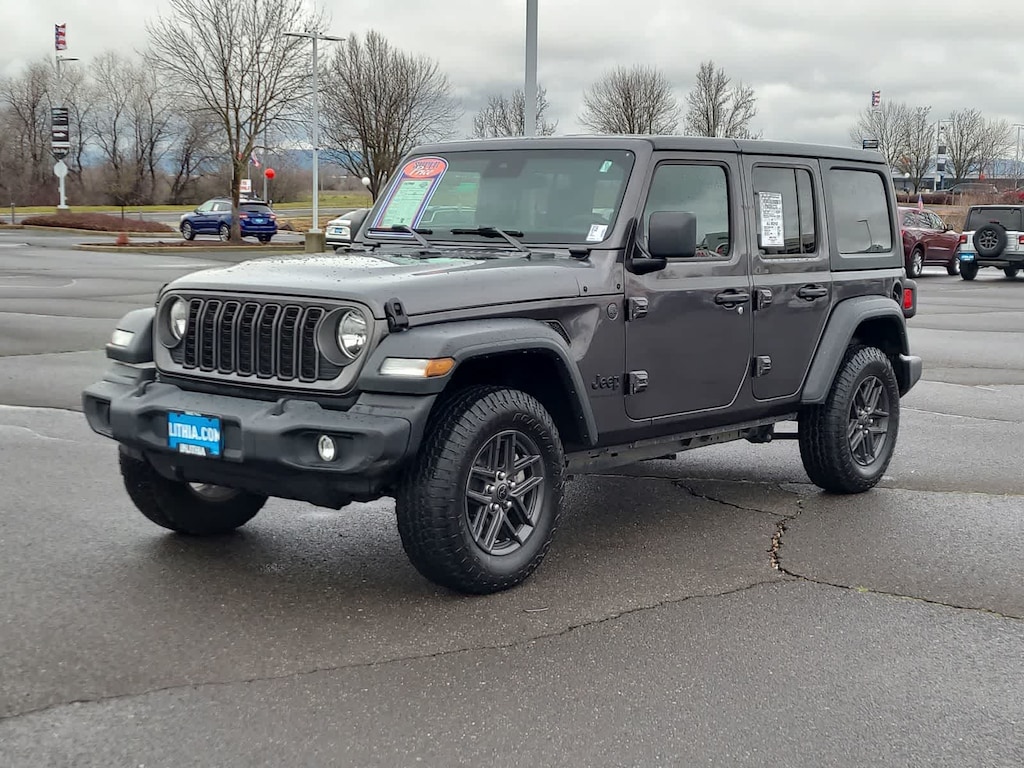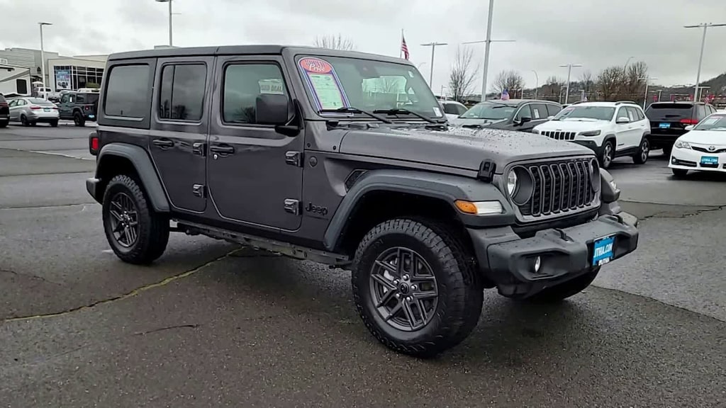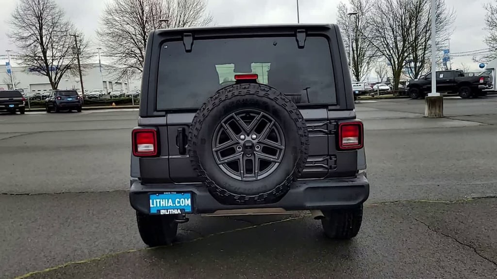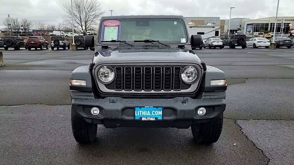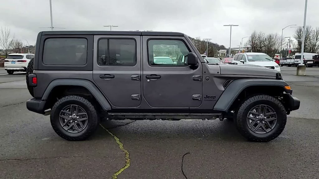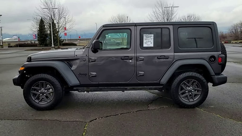 QUICK ORDER PACKAGE 22S SPORT S Engine: 2.0L I4 DOHC DI Turbo w/ESS, Transmission: 8-Speed Automatic (850RE), Advanced Brake Assist, Speed Sensitive Power Locks, Automatic Headlamps, Full Speed Forward Collision Warning Plus, Front 1-Touch Down Power Windows, Sport S, Power Heated Mirrors, Enhanced Adaptive Cruise Control, Corning Gorilla Glass, Premium Wrapped Steering Wheel, Security Alarm, Sun Visors w/Illuminated Vanity Mirrors, Remote Keyless Entry, TRANSMISSION: 8-SPEED AUTOMATIC (850RE) Adaptive Cruise Control w/Stop, Anti-Lock 4-Wheel Disc Brakes, Dana M200 Rear Axle, Selec-Speed Control, BLACK 3-PIECE HARD TOP Freedom Panel Storage Bag, Rear Window Defroster, Rear Window Wiper/Washer, No Soft Top, ENGINE: 2.0L I4 DOHC DI TURBO W/ESS. Jeep Sport S with Granite Crystal Metallic Clearcoat exterior and Black interior features a 4 Cylinder Engine with 270 HP at 5250 RPM*.