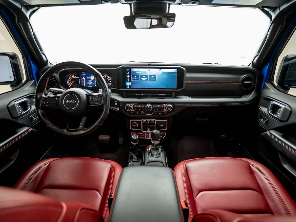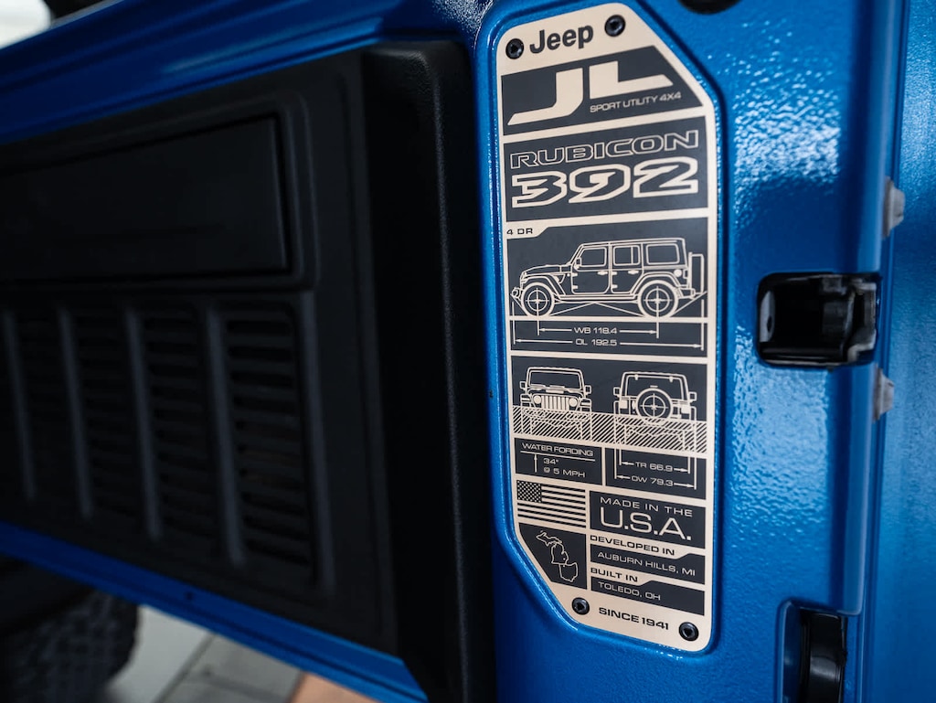 Navigation, 4x4, Heated Driver Seat, Back-Up Camera, Premium Sound System Jeep Rubicon 392 with Hydro Blue Pearlcoat exterior and Red/Black interior features a 8 Cylinder Engine with 470 HP at 6000 RPM*.