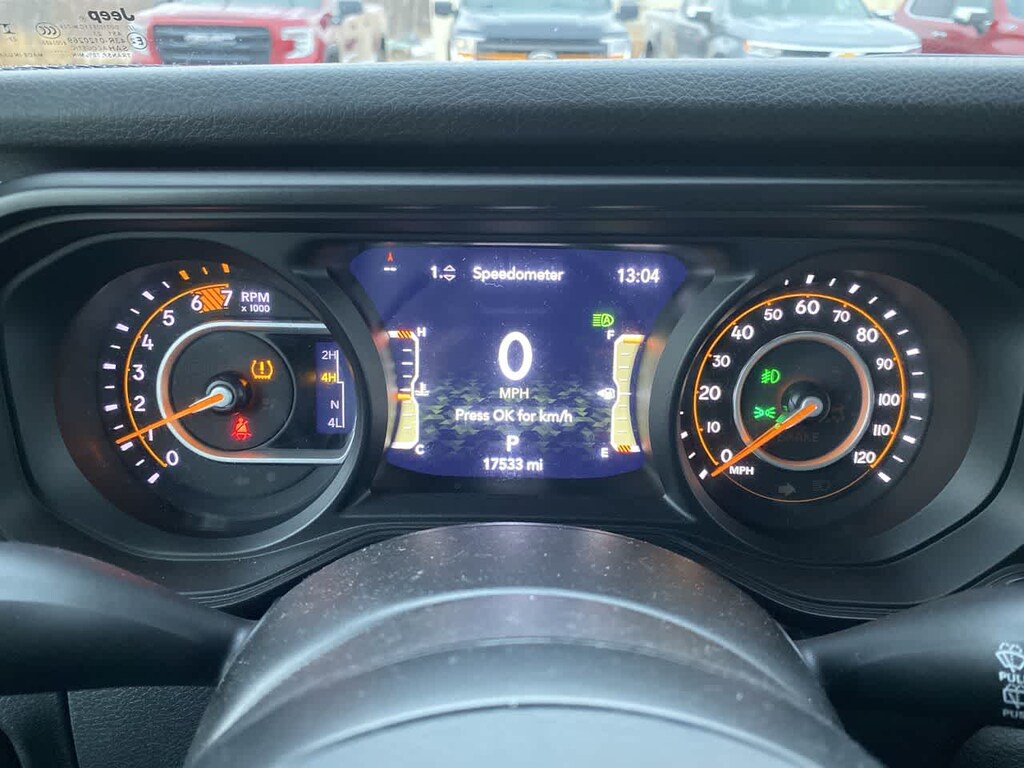 QUICK ORDER PACKAGE 22S SPORT S Engine: 2.0L I4 DOHC DI Turbo w/ESS, Transmission: 8-Speed Automatic (850RE), Advanced Brake Assist, Speed Sensitive Power Locks, Automatic Headlamps, Full Speed Forward Collision Warning Plus, Front 1-Touch Down Power Windows, Sport S, Power Heated Mirrors, Enhanced Adaptive Cruise Control, Corning Gorilla Glass, Premium Wrapped Steering Wheel, Security Alarm, Sun Visors w/Illuminated Vanity Mirrors, Remote Keyless Entry, TRANSMISSION: 8-SPEED AUTOMATIC (850RE) Adaptive Cruise Control w/Stop, Anti-Lock 4-Wheel Disc Brakes, Dana M200 Rear Axle, Selec-Speed Control, CONVENIENCE GROUP Emergency/Assistance Call, 2-Door Passive Entry, Front Door Locks, Remote Start System, Cluster 7.0 TFT Color Display, Universal Garage Door Opener, Heated Front Seats, Air Conditioning w/Auto Temp Control, Heated Steering Wheel, Air Filtering, BLACK 3-PIECE HARD TOP Freedom Panel Storage Bag, Rear Window Defroster, Rear Window Wiper/Washer, No Soft Top, SAFETY GROUP ParkSense Rear Park Assist System, Auto High Beam Headlamp Control, Blind Spot & Cross Path Detection, LED Taillamps, Injection Molded Black Rear Bumper, TECHNOLOGY GROUP 240 Amp Alternator, Alpine Premium Audio System, ENGINE: 2.0L I4 DOHC DI TURBO W/ESS. Jeep Sport S with Black Clearcoat exterior and Black interior features a 4 Cylinder Engine with 270 HP at 5250 RPM*.