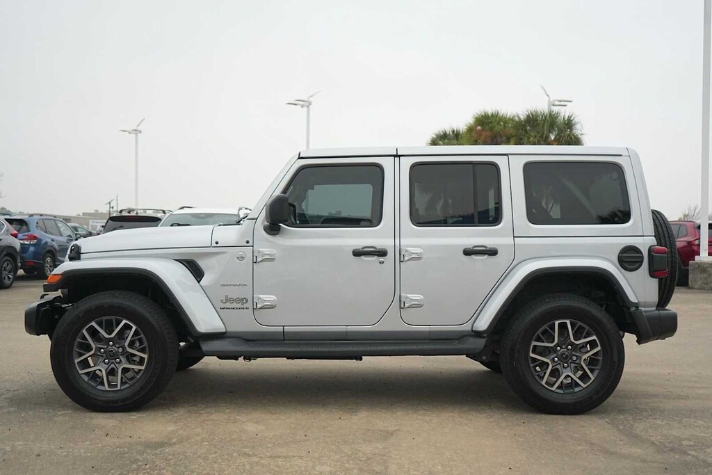 LOCAL TRADE, BLUETOOTH, CLEAN CARFAX, NON-SMOKER, CARFAX ONE OWNER, Service Records Available!, Remainder of Factory Warranty Still Applies!, ** LEATHER SEATS, ** TRAILER HITCH, ** HEATED SEATS, ** REARVIEW CAMERA, ** NAVIGATION SYSTEM, ** KEYLESS ENTRY, ** APPLE CARPLAY, ** REMOTE ENGINE START, ** BLUETOOTH, HANDS-FREE, ** BLIND SPOT ALERT, ** KEYLESS START, ** PREMIUM WHEELS, ** PREMIUM SOUND SYSTEM, ** ANDROID AUTO, ** LANE DEPARTURE WARNING, ** SATELLITE RADIO, ** STEERING WHEEL CONTROLS, ** ALARM SYSTEM, ** WIFI HOTSPOT, ** AUXILIARY AUDIO INPUT, ** LOCAL TRADE-IN, ** LOCALLY OWNED AND SERVICED, ** ALL WHEEL DRIVE, ** FOUR WHEEL DRIVE, ** BACK UP CAMERA, ** ALLOY WHEELS, Wrangler Sahara, 4D Sport Utility, 3.6L V6 24V VVT, 8-Speed Automatic, 4WD, Silver Zynith Clearcoat, Black Cloth, 110 MPH Vehicle Max Speed Calibration, 12.3 Touchscreen Display, 3.45 Overall Top Gear Ratio, 4-Wheel Disc Brakes, 8 Speakers, ABS brakes, Air Conditioning, Alloy wheels, AM/FM radio: SiriusXM, Apple CarPlay, Apple CarPlay/Android Auto, Automatic temperature control, Aux Battery, Body Color 3-Piece Hard Top, Brake assist, Cloth Low-Back Bucket Seats, Compass, Connectivity - US/Canada, Delay-off headlights, Disassociated Touchscreen Display, Driver door bin, Driver vanity mirror, Dual front impact airbags, Dual front side impact airbags, Electronic Stability Control, Emergency communication system: Jeep Connect, Freedom Panel Storage Bag, Front anti-roll bar, Front Bucket Seats, Front Center Armrest w/Storage, Front dual zone A/C, Front fog lights, Front License Plate Bracket, Front reading lights, Fully automatic headlights, Google Android Auto, Heated door mirrors, Heated front seats, Heated steering wheel, Heavy Duty Suspension w/Gas Shocks, Illuminated entry, Integrated Center Stack Radio, Integrated roll-over protection, Integrated Voice Command w/Bluetooth, Low tire pressure warning, No Soft Top, Non-Lock Fuel Cap w/o Discriminator, Occupant sensing airbag, Outside temperature display, Overhead airbag, Panic alarm, ParkView Rear Back-Up Camera, Passenger door bin, Passenger vanity mirror, Power door mirrors, Power steering, Power windows, Quick Order Package 24G Sahara, Radio data system, Radio: Uconnect 5 w/12.3 Display, Rear anti-roll bar, Rear reading lights, Rear Window Defroster, Rear Window Wiper/Washer, Remote keyless entry, Security system, Speed control, Split folding rear seat, Steering wheel mounted audio controls, Stop-Start Dual Battery System, Tachometer, Telescoping steering wheel, Tilt steering wheel, Traction control, Trip computer, Variably intermittent wipers, Voltmeter, Wheels: 18 x 7.5 Machine/Painted Gray, Wrangler Sahara, 4D Sport Utility, 3.6L V6 24V VVT, 8-Speed Automatic, 4WD, Silver Zynith Clearcoat, Black Cloth.