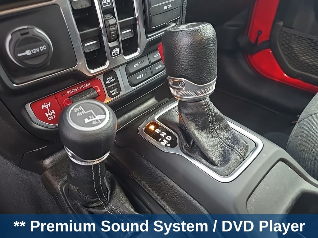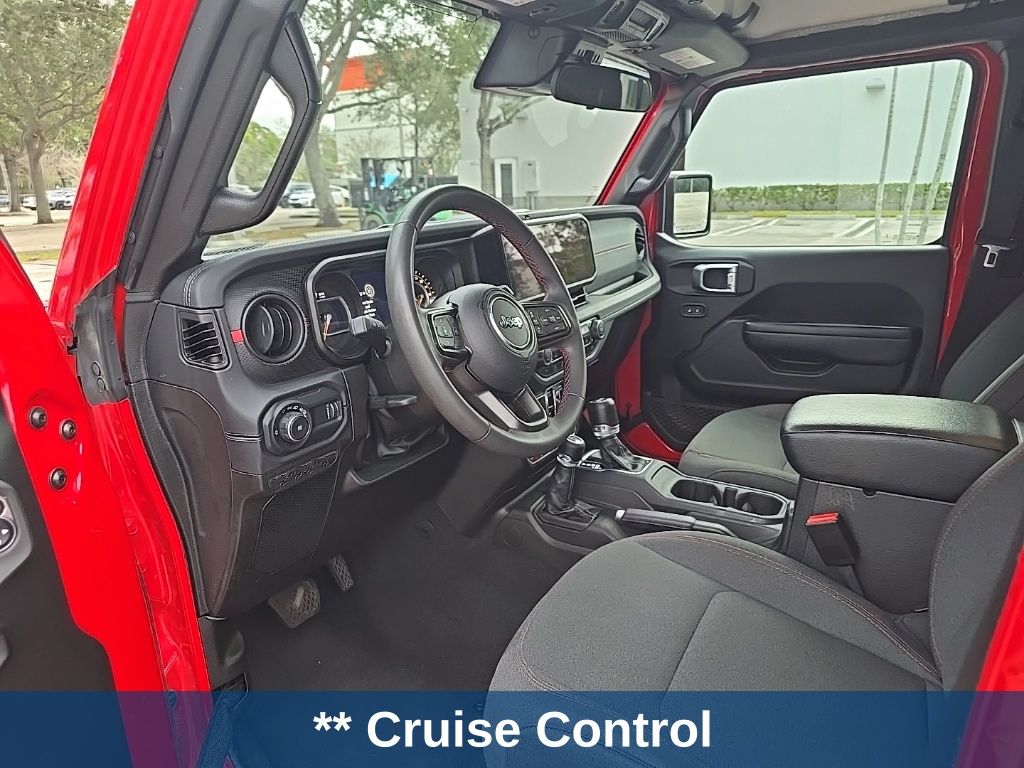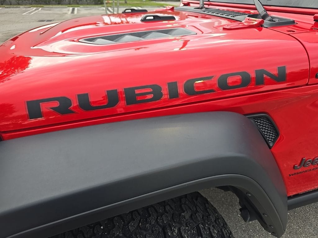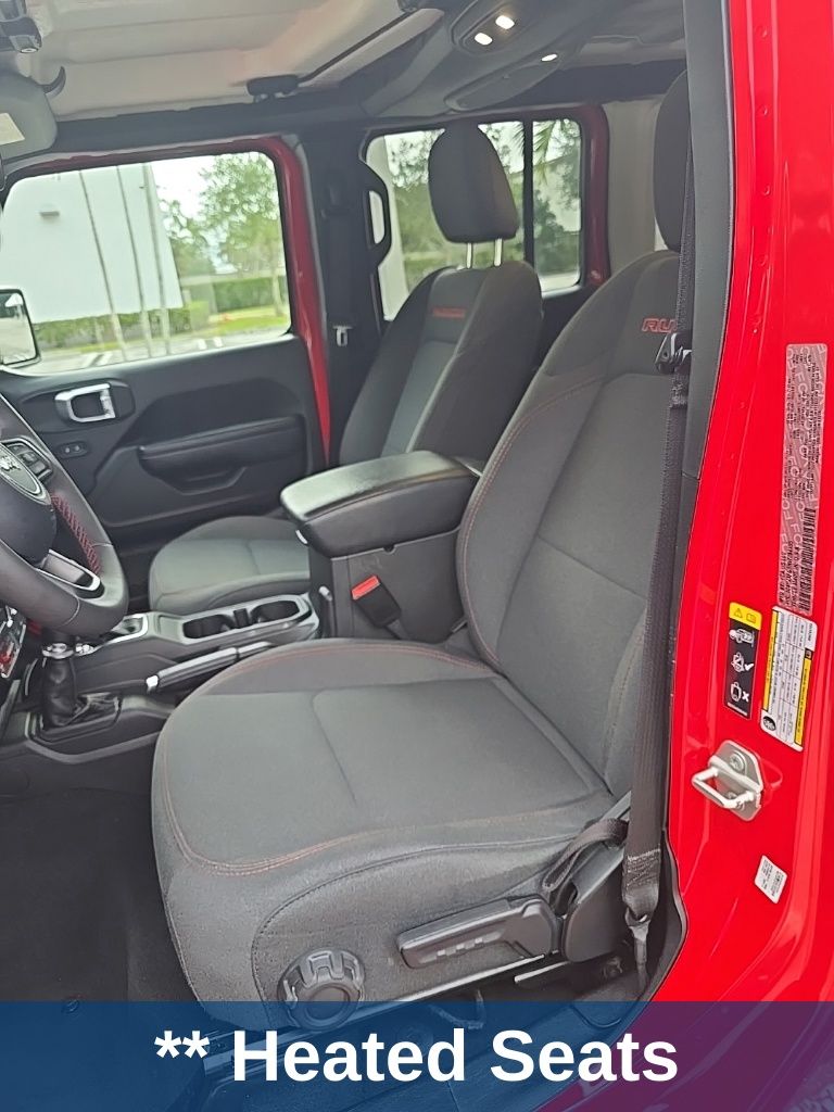 ** Adaptive cruise control, ** Alloy Wheels / Premium Wheels, ** Apple CarPlay/Android Auto, ** Backup Camera, ** Blind Spot Monitor, ** Bluetooth, Hands-Free, ** Brake Assist, ** Cruise Control, ** Heated Seats, ** Heated Steering Wheel, ** Keyless Entry, ** Lane Departure Warning, ** Leather Seats, ** LED Headlights, ** Navigation System, ** Premium Sound System / DVD Player, ** Rear Cross Traffic Alert, ** Roof Rack, ** Satellite Radio, ** Security System, ** Stability Control, ** Steering Wheel Controls, ** Tow Hitch / Trailer Hitch, ** USB Port, Wrangler Rubicon, 4D Sport Utility, 3.6L V6 24V VVT, 8-Speed Automatic, 4WD, Firecracker Red Clearcoat, Black Cloth, 12.3" Touchscreen Display, 4-Wheel Disc Brakes, 4.10 Rear Axle Ratio, 8 Speakers, 97 MPH Vehicle Max Speed Calibration, ABS brakes, Air Conditioning, Alloy wheels, AM/FM radio: SiriusXM, Apple CarPlay, Apple CarPlay/Android Auto, Automatic temperature control, Aux Battery, Black 3-Piece Hard Top, Brake assist, Cloth Low-Back Bucket Seats, Compass, Connectivity - US/Canada, Delay-off headlights, Disassociated Touchscreen Display, Driver door bin, Driver vanity mirror, Dual front impact airbags, Dual front side impact airbags, Electronic Stability Control, Emergency communication system: Jeep Connect, Freedom Panel Storage Bag, Front anti-roll bar, Front Bucket Seats, Front Center Armrest w/Storage, Front dual zone A/C, Front fog lights, Front License Plate Bracket, Front reading lights, Fully automatic headlights, Google Android Auto, Heated door mirrors, Illuminated entry, Integrated Center Stack Radio, Integrated roll-over protection, Integrated Voice Command w/Bluetooth, Low tire pressure warning, No Soft Top, Non-Lock Fuel Cap w/o Discriminator, Occupant sensing airbag, Outside temperature display, Overhead airbag, Panic alarm, ParkView Rear Back-Up Camera, Passenger door bin, Passenger vanity mirror, Performance Suspension, Power door mirrors, Power steering, Power windows, Quick Order Package 24R Rubicon, Radio data system, Radio: Uconnect 5 w/12.3" Display, Rear anti-roll bar, Rear reading lights, Rear Window Defroster, Rear Window Wiper/Washer, Remote keyless entry, Security system, Speed control, Split folding rear seat, Steering wheel mounted audio controls, Stop-Start Dual Battery System, Tachometer, Telescoping steering wheel, Tilt steering wheel, Traction control, Trip computer, Variably intermittent wipers, Voltmeter, Wheels: 17" x 7.5" Machined/Painted Black.