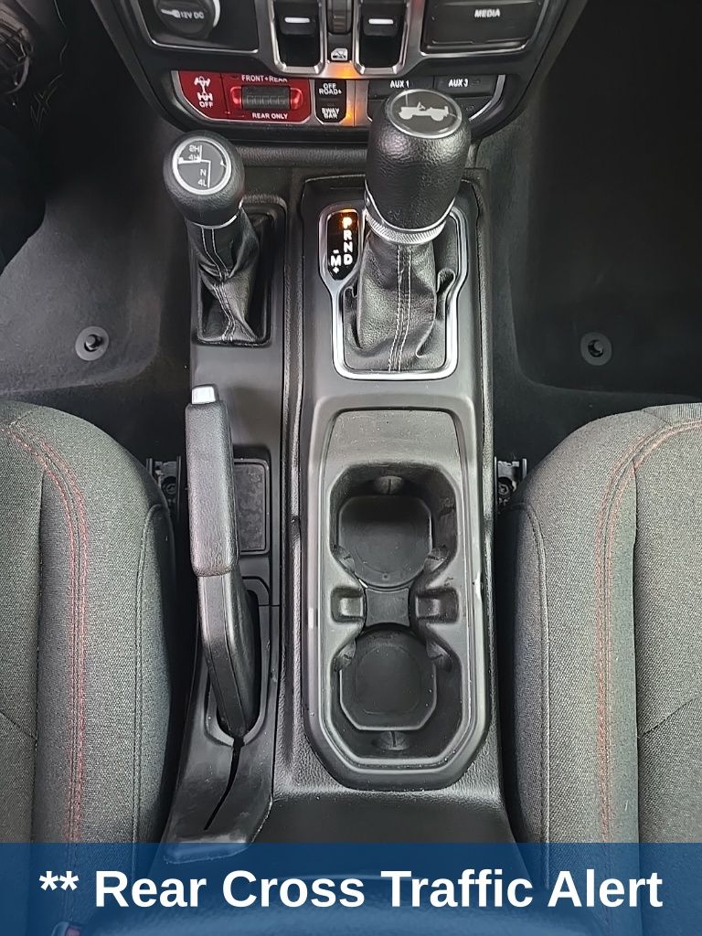 This Wrangler is well equipped with Quick Order Package 24R Rubicon, Wrangler Rubicon, 4D Sport Utility, 3.6L V6 24V VVT, 8-Speed Automatic, 4WD, Firecracker Red Clearcoat, Black Cloth, 12.3" Touchscreen Display, 4-Wheel Disc Brakes, 4.10 Rear Axle Ratio, 8 Speakers, 97 MPH Vehicle Max Speed Calibration, ABS brakes, Air Conditioning, Alloy wheels, AM/FM radio: SiriusXM, Apple CarPlay, Apple CarPlay/Android Auto, Automatic temperature control, Aux Battery, Black 3-Piece Hard Top, Brake assist, Cloth Low-Back Bucket Seats, Compass, Connectivity - US/Canada, Delay-off headlights, Disassociated Touchscreen Display, Driver door bin, Driver vanity mirror, Dual front impact airbags, Dual front side impact airbags, Electronic Stability Control, Emergency communication system: Jeep Connect, Freedom Panel Storage Bag, Front anti-roll bar, Front Bucket Seats, Front Center Armrest w/Storage, Front dual zone A/C, Front fog lights, Front License Plate Bracket, Front reading lights, Fully automatic headlights, Google Android Auto, Heated door mirrors, Illuminated entry, Integrated Center Stack Radio, Integrated roll-over protection, Integrated Voice Command w/Bluetooth, Low tire pressure warning, No Soft Top, Non-Lock Fuel Cap w/o Discriminator, Occupant sensing airbag, Outside temperature display, Overhead airbag, Panic alarm, ParkView Rear Back-Up Camera,