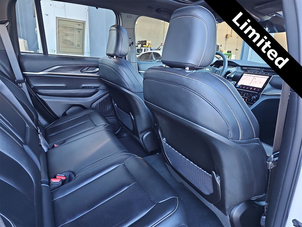 THIS VEHICLE IS EQUIPPED WITH THE FOLLOWING OPTIONS AND FEATURES: Black Appearance Package (Gloss Black Exterior Accents and Wheels: 20 x 8.5 Gloss Black Painted Aluminum), Luxury Tech Group II (2nd-Row Manual Window Shades, Auto-Dimming Exterior Driver Mirror, Capri Leatherette with Axis II Seats, Front/Rear Doors and Liftgate with Passive Entry, Integrated Off-Road Camera, Intersection Collision Assist System, Memory Steering Column, ParkSense Front/Rear Park Assist with Stop, Power Tilt/Telescope Steering Column, Rain Sensitive Windshield Wipers, Rear Back-Up Camera Washer, Rearview Autodim Digital Display Mirror, Surround View Camera System, Ventilated Front Seats, and Wireless Charging Pad), Quick Order Package 22E, 4WD, 4-Wheel Disc Brakes, 6 Speakers, ABS brakes, Active Noise Control System, Air Conditioning, Alloy wheels, AM/FM radio: SiriusXM with 360L, Anti-whiplash front head restraints, Audio memory, Auto High-beam Headlights, Automatic temperature control, Brake assist, Bumpers: body-color, Capri Leatherette Seats, Compass, Delay-off headlights, Driver door bin, Driver vanity mirror, Dual front impact airbags, Dual front side impact airbags, Dual-Pane Panoramic Sunroof, Electronic Stability Control, Emergency communication system, Four wheel independent suspension, Front anti-roll bar, Front Bucket Seats, Front Center Armrest w/Storage, Front dual zone A/C, Front fog lights, Front License Plate Bracket, Front reading lights, Fully automatic headlights, Garage door transmitter, Heated door mirrors, Heated front seats, Heated rear seats, Heated steering wheel, Illuminated entry, Knee airbag, Low tire pressure warning, Memory seat, Model Year Tracking, Navigation System, Normal Duty Suspension, Occupant sensing airbag, Outside temperature display, Overhead airbag, Overhead console, Panic alarm, ParkView Rear Back-Up Camera, Passenger door bin, Passenger vanity mirror, Power door mirrors, Power driver seat, Power Liftgate, Power passenger seat, Power steering, Power windows, Radio data system, Radio: Uconnect 5 Nav with 10.1 Display, Rear anti-roll bar, Rear reading lights, Rear window defroster, Rear window wiper, Remote keyless entry, Security system, Speed control, Speed-Sensitive Wipers, Split folding rear seat, Spoiler, Steering wheel mounted audio controls, Tachometer, Telescoping steering wheel, Tilt steering wheel, Traction control, Trip computer, Turn signal indicator mirrors, Variably intermittent wipers, Voltmeter, and Wheels: 18 x 8 Polished/Painted Aluminum. 19/26 City/Highway MPG