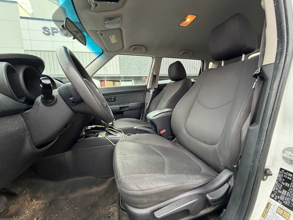 Clear White 2013 Kia Soul FWD 6-Speed Automatic 1.6L I4 DGI Gamma 15 x 6.0J Steel w/Full Wheel Covers Wheels, 4 Speakers, 4-Wheel Disc Brakes, ABS brakes, Air Conditioning, AM/FM radio: SiriusXM, AM/FM/CD/MP3 Audio System, Anti-whiplash front head restraints, Bodyside moldings, Brake assist, Bumpers: body-color, CD player, Driver door bin, Dual front impact airbags, Dual front side impact airbags, Electronic Stability Control, Front anti-roll bar, Front Bucket Seats, Front wheel independent suspension, Illuminated entry, Low tire pressure warning, Occupant sensing airbag, Outside temperature display, Overhead airbag, Panic alarm, Passenger door bin, Power steering, Power windows, Rear window defroster, Rear window wiper, Remote keyless entry, Speed control, Speed-sensing steering, Split folding rear seat, Steering wheel mounted audio controls, Tachometer, Telescoping steering wheel, Tilt steering wheel, Traction control, Trip computer, Variably intermittent wipers, Woven Cloth Seat Trim.