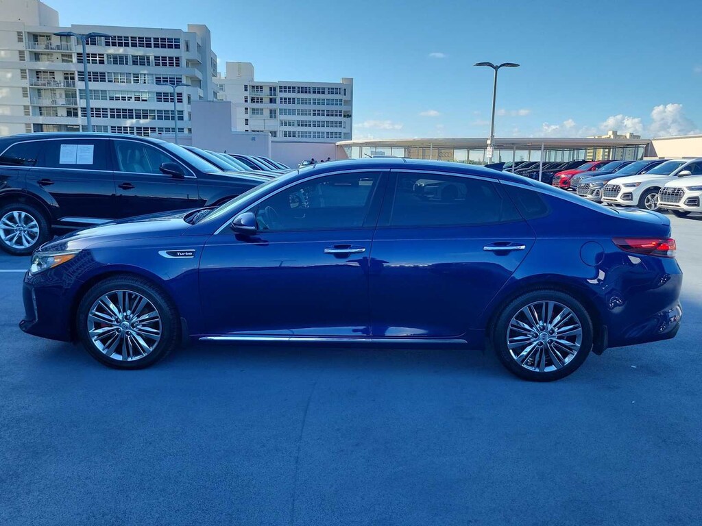 Clean CARFAX. Priced below KBB Fair Purchase Price! Optima Horizon Blue SXL FWD 6-Speed Automatic with Sportmatic 2.0L I4 DGI DOHC Turbocharged Optima SXL Turbo, 4D Sedan, 2.0L I4 DGI DOHC Turbocharged, 6-Speed Automatic with Sportmatic, FWD, Horizon Blue, Black w/Nappa Leather Seat Trim, 18 Chrome Alloy Wheels, Alloy wheels, Anti-whiplash front head restraints, Auto High-beam Headlights, Automatic temperature control, Black Nappa Leather Interior, Chrome wheels, Delay-off headlights, Dual front impact airbags, Dual front side impact airbags, Front anti-roll bar, Fully automatic headlights, harman/kardonî Speakers, Knee airbag, Nappa Leather Seat Trim, Occupant sensing airbag, Overhead airbag, Power moonroof, Rear anti-roll bar, Rear Parking Sensors.