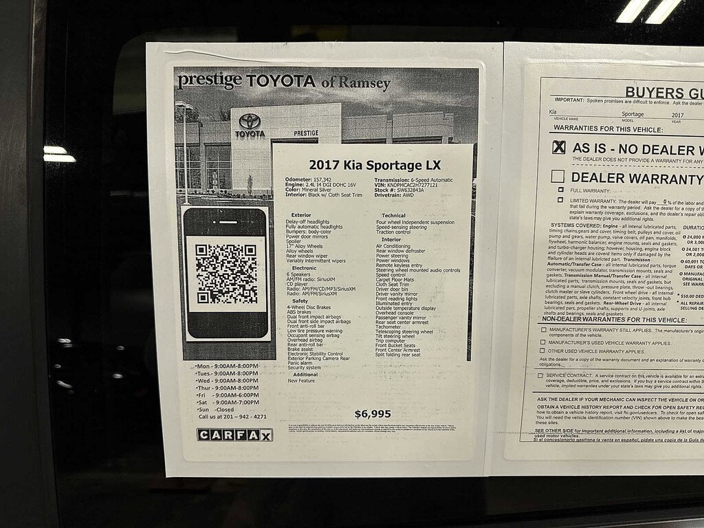 Sportage LX, 4D Sport Utility, 2.4L I4 DGI DOHC 16V, 6-Speed Automatic, AWD, Mineral Silver. Clean CARFAX. Mineral Silver 2017 Kia Sportage LX AWD 6-Speed Automatic 2.4L I4 DGI DOHC 16V