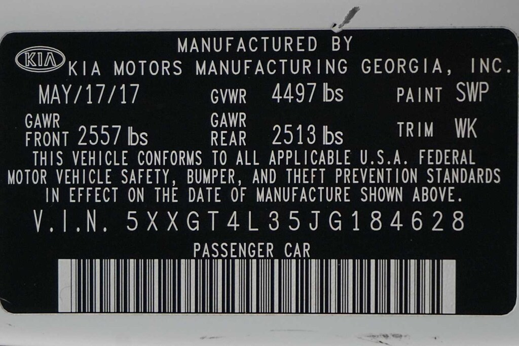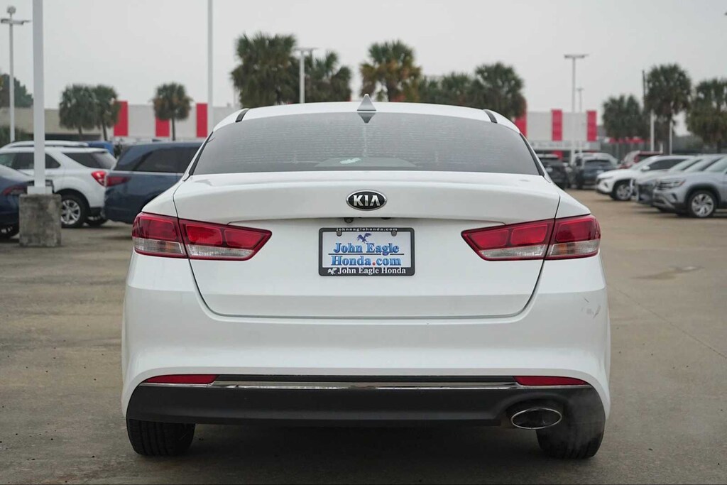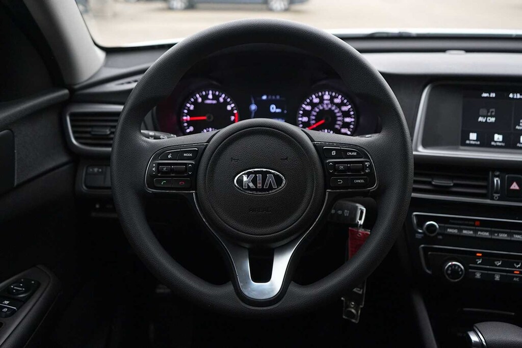 LOCAL TRADE, BLUETOOTH, Optima LX, 4D Sedan, 2.4L I4 DGI DOHC, 6-Speed Automatic with Sportmatic, FWD, Snow White Pearl, Black Cloth, 4-Wheel Disc Brakes, 6 Speakers, 6.5J x 16 Silver Alloy Wheels, ABS brakes, Air Conditioning, Alloy wheels, AM/FM radio: SiriusXM, Anti-whiplash front head restraints, Apple CarPlay & Android Auto, Brake assist, Bumpers: body-color, Carpeted Floor Mats, Cloth Seat Trim, Delay-off headlights, Driver door bin, Driver vanity mirror, Dual front impact airbags, Dual front side impact airbags, Electronic Stability Control, Emergency communication system, Exterior Parking Camera Rear, Four wheel independent suspension, Front anti-roll bar, Front Bucket Seats, Front Center Armrest, Front reading lights, Fully automatic headlights, Heated door mirrors, Illuminated entry, Knee airbag, Low tire pressure warning, Occupant sensing airbag, Outside temperature display, Overhead airbag, Overhead console, Panic alarm, Passenger door bin, Passenger vanity mirror, Power door mirrors, Power steering, Power windows, Radio data system, Radio: AM/FM/MP3/SiriusXM Audio System, Rear anti-roll bar, Rear Bumper Applique, Rear Parking Sensors, Rear seat center armrest, Rear window defroster, Remote keyless entry, Security system, Speed control, Speed-sensing steering, Split folding rear seat, Steering wheel mounted audio controls, Tachometer, Telescoping steering wheel, Tilt steering wheel, Traction control, Trip computer, Turn signal indicator mirrors, Variably intermittent wipers, Optima LX, 4D Sedan, 2.4L I4 DGI DOHC, 6-Speed Automatic with Sportmatic, FWD, Snow White Pearl, Black Cloth.