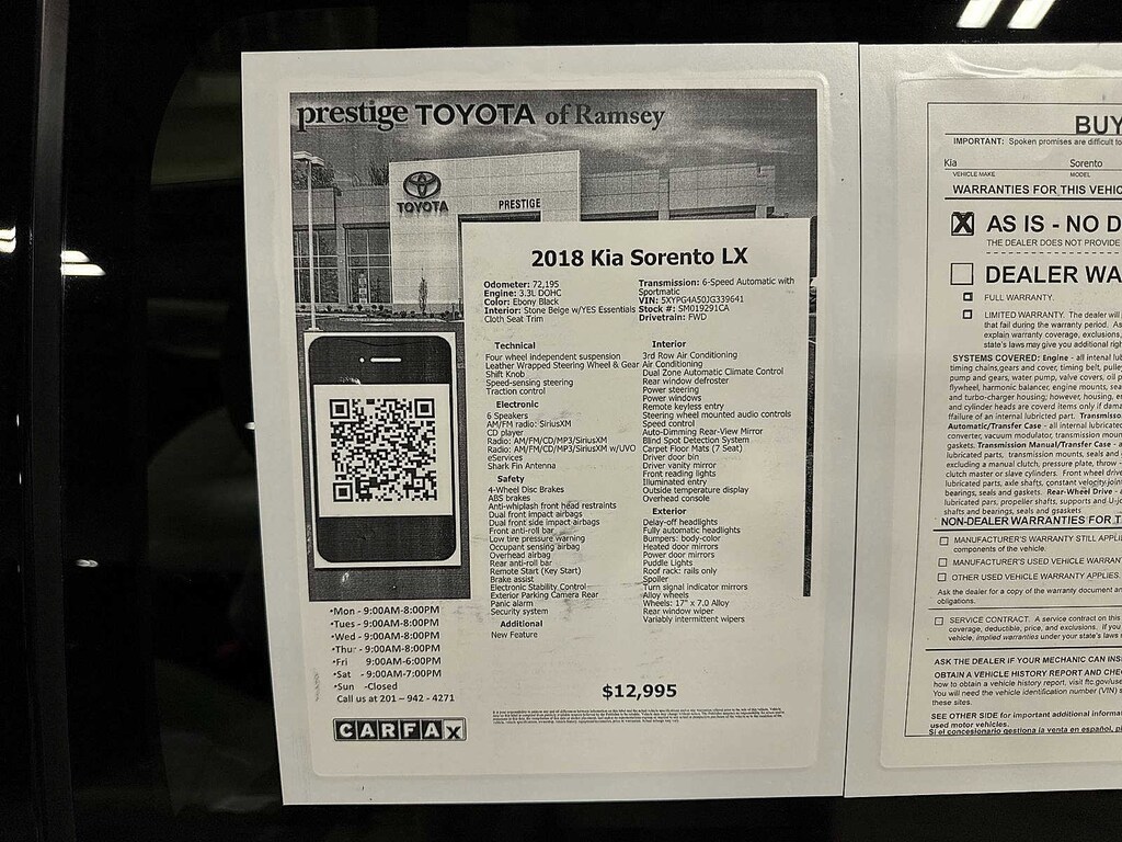 This 2018 Kia Sorento LX will not make it to the weekend!! CALL NOW to reserve your test drive!! (844) 838-7075 Please Visit www.PrestigeToyota.com for further details. Price does not include licensing costs, registration fees, taxes and dealer doc fee of $999 which are to be paid by the consumer.