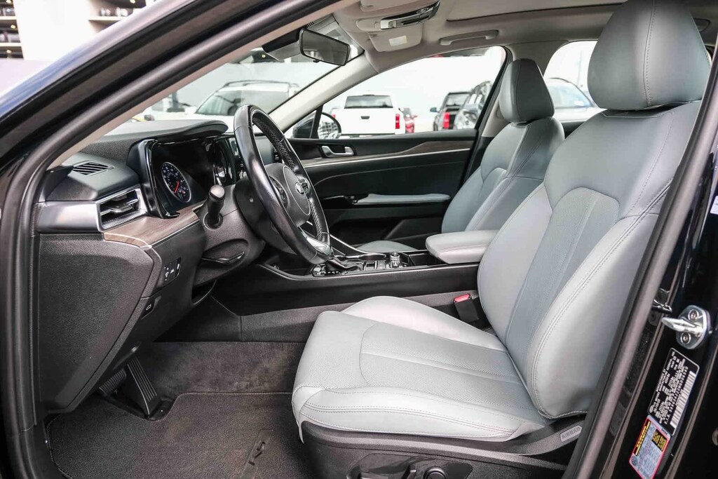 WELCOME TO TOYOTA OF DOWNTOWN LA... 2021 Kia K5 EX Ebony Black FWD 8-Speed Automatic 1.6L I4 DGI 6 Speakers, Air Conditioning, AM/FM radio: SiriusXM, Apple CarPlay & Android Auto, Automatic temperature control, Brake assist, Delay-off headlights, Electronic Stability Control, EX Ash Blue Color Package, Fully automatic headlights, Heated & Ventilated Front Bucket Seats, Illuminated entry, Leatherette Seat Trim, Power moonroof, Remote keyless entry, Smart Key w/ Push Button and Remote Start, Speed control, Speed-sensing steering, Split folding rear seat, Steering wheel mounted audio controls, Traction control, Ventilated front seats, Wheels: 7.5J x 18 Gray Machined Finish Alloy. Odometer is 33355 miles below market average! 27/37 City/Highway MPG