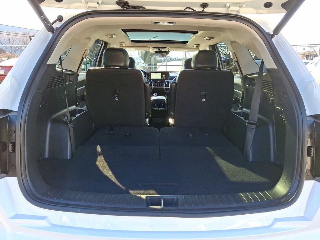Third Row Seat, Navigation, Sunroof, Panoramic Roof, All Wheel Drive, Quad Bucket Seats, Power Liftgate, Rear Air, Heated Driver Seat, Back-Up Camera, Turbocharged, Satellite Radio, iPod/MP3 Input, Onboard Communications System, Aluminum Wheels Kia SX with Glacial White Pearl exterior and Black interior features a 4 Cylinder Engine with 281 HP at 5800 RPM*.
