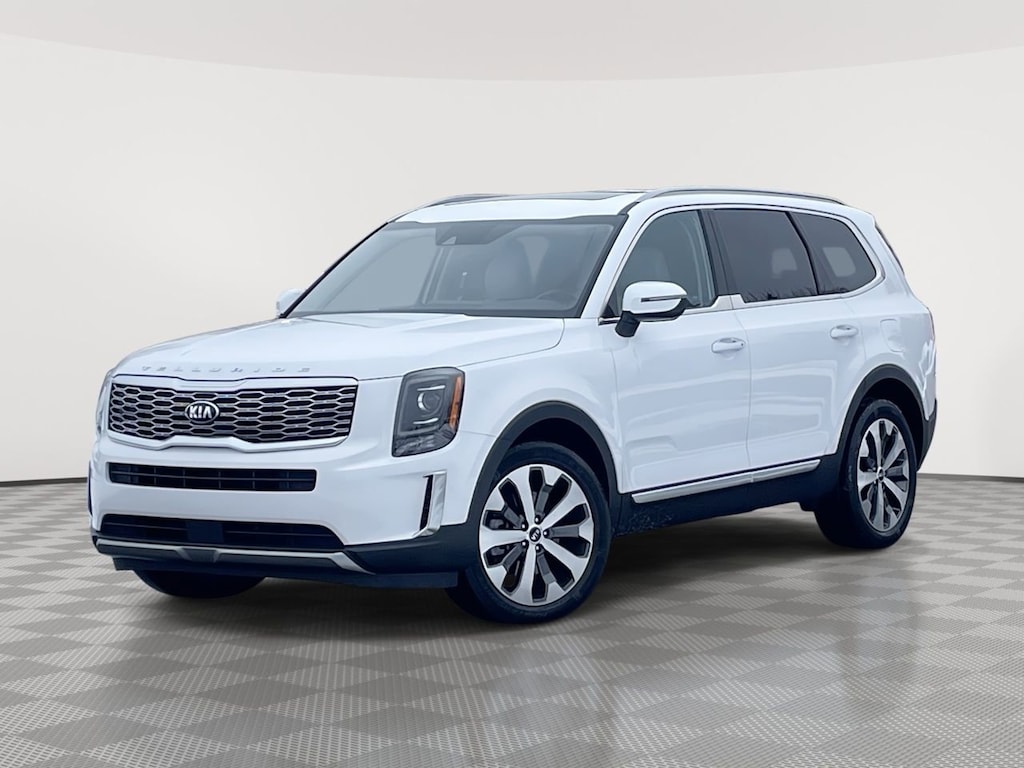 Recent Arrival! Clean CARFAX. 2021 Kia Telluride S Glacial White Pearl Apple CarPlay & Android Auto, Electronic Stability Control, Front Bucket Seats, Fully automatic headlights, Heated Front Bucket Seats, Leather steering wheel, Power driver seat, Power moonroof, Radio: AM/FM/SIRIUS Display Audio, Rear air conditioning, Rear anti-roll bar, Wheels: 7.5 x 20 Machined Finish Alloy.