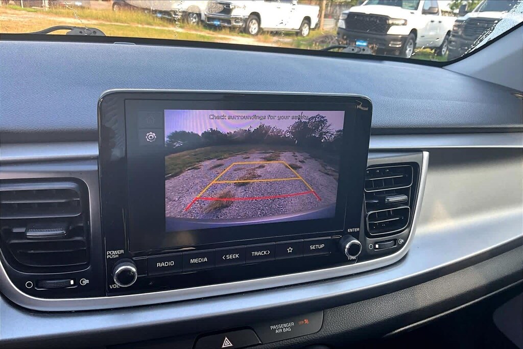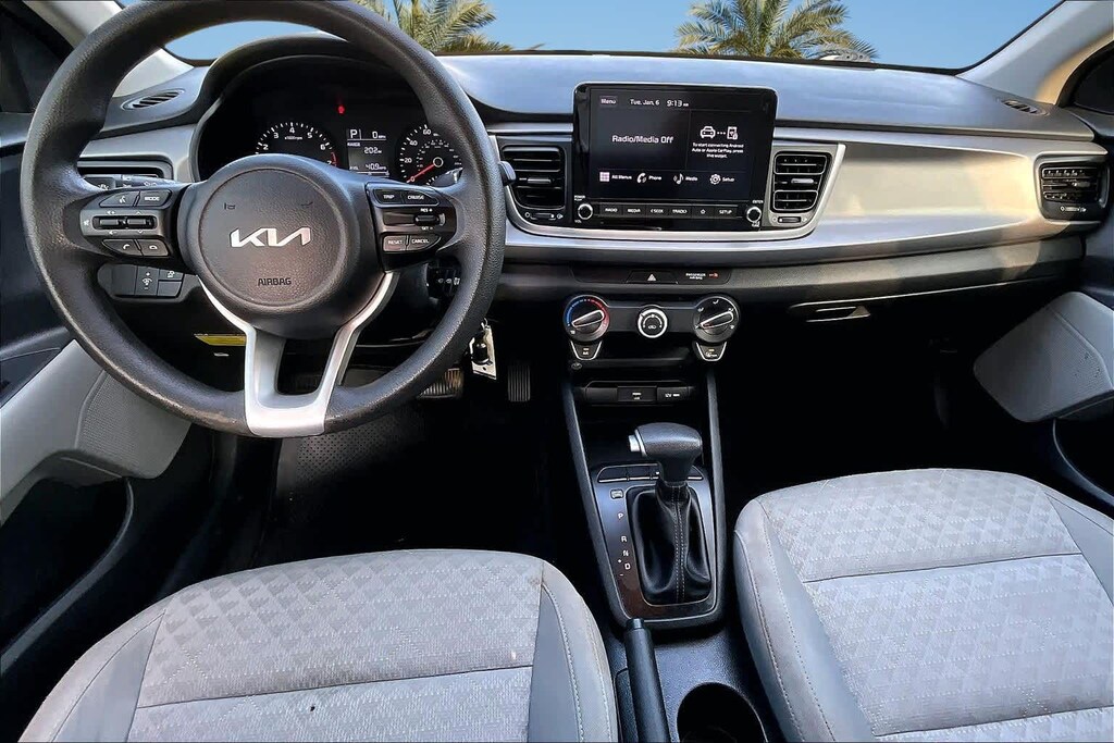 FRESH OIL CHANGE, Gray Cloth, 6 Speakers, ABS brakes, Air Conditioning, AM/FM radio, Brake assist, Bumpers: body-color, Driver door bin, Driver vanity mirror, Dual front impact airbags, Dual front side impact airbags, Electronic Stability Control, Front anti-roll bar, Front Bucket Seats, Front Center Armrest, Front reading lights, Front wheel independent suspension, Fully automatic headlights, Heated door mirrors, Illuminated entry, Low tire pressure warning, Occupant sensing airbag, Outside temperature display, Overhead airbag, Overhead console, Panic alarm, Passenger door bin, Passenger vanity mirror, Power door mirrors, Power steering, Power windows, Radio: AM/FM/MP3 Audio System, Rear window defroster, Remote keyless entry, Speed control, Speed-sensing steering, Split folding rear seat, Steering wheel mounted audio controls, Tachometer, Tilt steering wheel, Traction control, Trip computer, Variably intermittent wipers, Wheels: 15 x 5.5J Steel w/Full Covers, Woven & Tricot Cloth Seat Trim, Gray Cloth. 32/41 City/Highway MPG Steel Gray 2023 Kia Rio S FWD CVT 1.6L 4-Cylinder