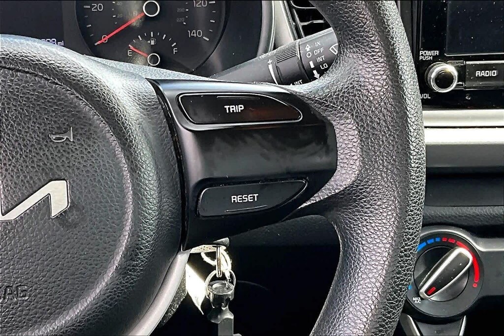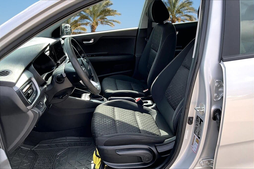 FRESH OIL CHANGE, Black Cloth, 6 Speakers, ABS brakes, Air Conditioning, AM/FM radio, Brake assist, Bumpers: body-color, Driver door bin, Driver vanity mirror, Dual front impact airbags, Dual front side impact airbags, Electronic Stability Control, Front anti-roll bar, Front Bucket Seats, Front reading lights, Front wheel independent suspension, Fully automatic headlights, Heated door mirrors, Illuminated entry, Low tire pressure warning, Occupant sensing airbag, Outside temperature display, Overhead airbag, Overhead console, Panic alarm, Passenger door bin, Passenger vanity mirror, Power door mirrors, Power steering, Power windows, Radio: AM/FM/MP3 Audio System, Rear window defroster, Speed-sensing steering, Steering wheel mounted audio controls, Tachometer, Tilt steering wheel, Traction control, Trip computer, Variably intermittent wipers, Wheels: 15 x 5.5J Steel w/Full Covers, Woven & Tricot Cloth Seat Trim, Black Cloth. 32/41 City/Highway MPG Silky Silver 2023 Kia Rio LX FWD CVT 1.6L 4-Cylinder