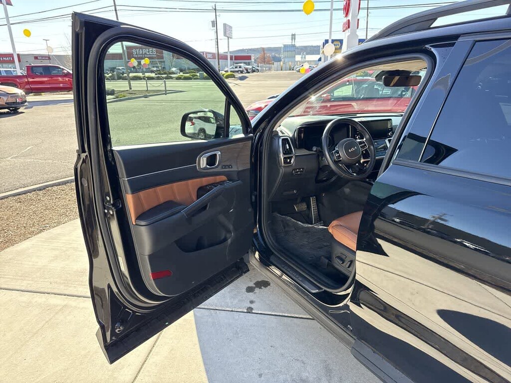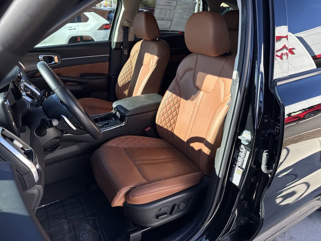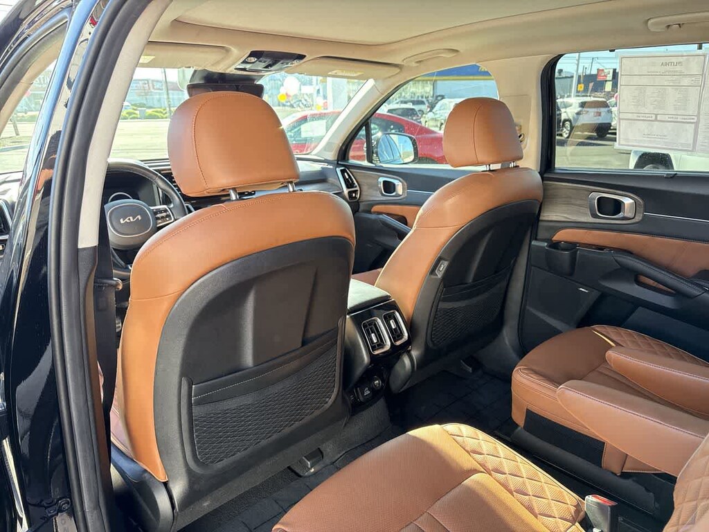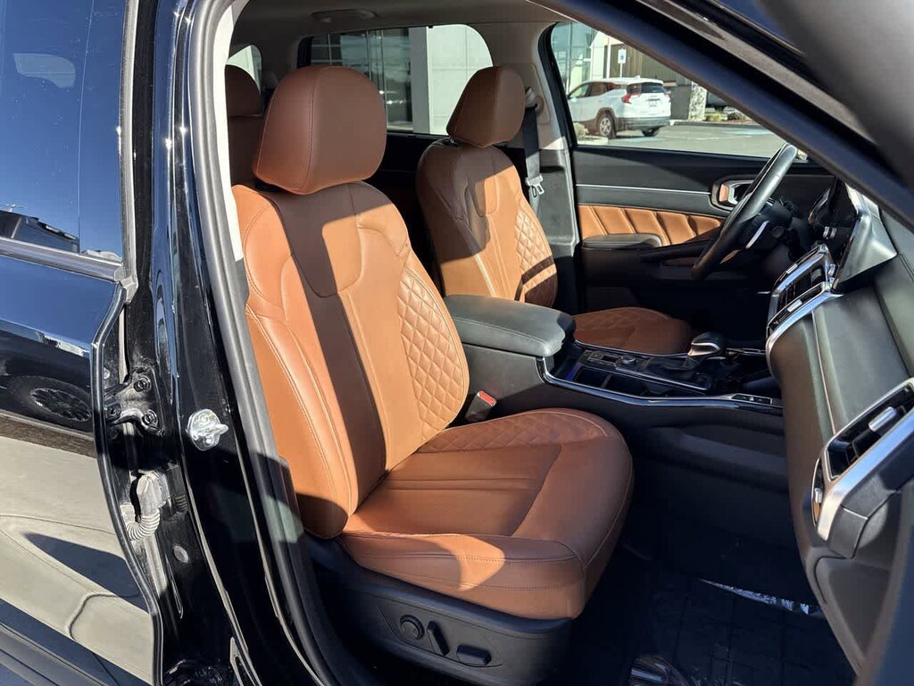 Leather Seats, Third Row Seat, Navigation, Sunroof, Panoramic Roof, All Wheel Drive, Quad Bucket Seats, Power Liftgate, Rear Air, Heated Driver Seat, Heated Rear Seat, Cooled Driver Seat, Back-Up Camera, Turbocharged, Premium Sound System Kia X-Line SX Prestige with Ebony Black exterior and Black interior features a 4 Cylinder Engine with 281 HP at 5800 RPM*.