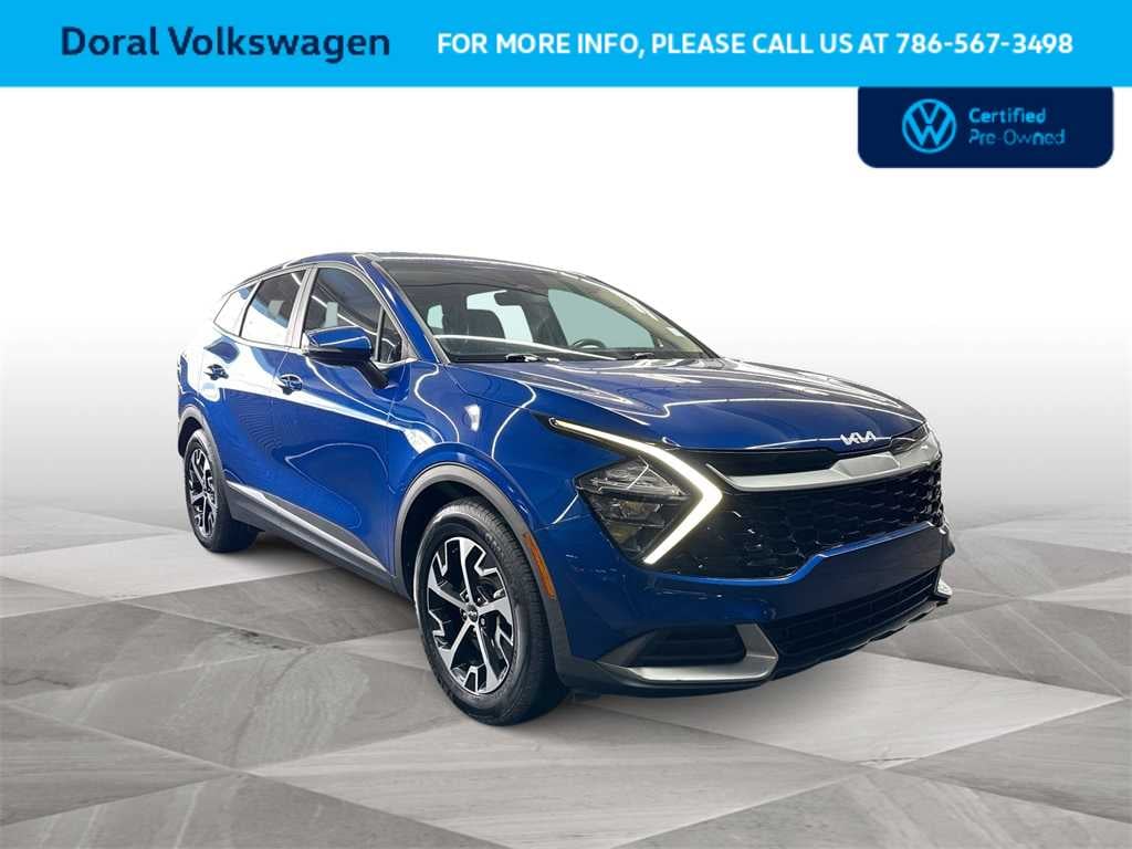 ALL INVENTORY IS ON MIAMI NOT TAMPA. BUY WITH CONFIDENCE! WE LOVE TRADES! HASSLE FREE FINANCE PLANS FOR EVERYONE! PLEASE CALL TO ENSURE AVAILABILITY AS OUR INVENTORY CHANGES BY THE HOUR. AFFORDABLE FINANCE PLANS! EASY FINANCE OPTIONS! ALL INVENTORY IS READY FOR INSTANT DELIVERY! Odometer is 7939 miles below market average! NO ACCIDENTS OR ISSUES, COMPLETE 182 POINT MANUFACTURERS INSPECTION, FULL SERVICE PERFORMED, LOW MILES, NAVIGATION SYSTEM, BACK UP CAMERA, LOW PRICE AND A GREAT VALUE, LOOKS AND FEELS LIKE A NEW CAR. Priced below KBB Fair Purchase Price! 25/32 City/Highway MPG Sapphire Blue 2023 Kia Sportage EX I4