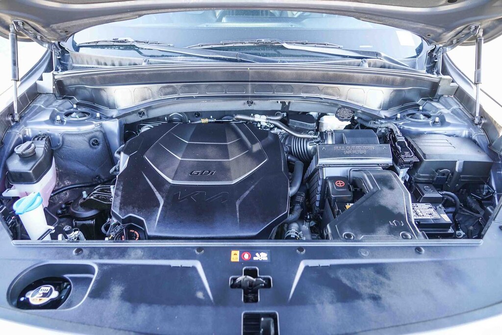 3.510 Axle Ratio, 3rd row seats: split-bench, 4-Wheel Disc Brakes, 6 Speakers, ABS brakes, Air Conditioning, Alloy wheels, AM/FM radio: SiriusXM, Apple CarPlay & Android Auto, Auto High-beam Headlights, Automatic temperature control, Brake assist, Bumpers: body-color, Cargo Cover, Cargo Tray Seat Back, Carpet Floor Mats, Delay-off headlights, Driver door bin, Driver vanity mirror, Dual front impact airbags, Dual front side impact airbags, Electronic Stability Control, Emergency communication system: 911 Connect, Exterior Parking Camera Rear, Four wheel independent suspension, Front anti-roll bar, Front Bucket Seats, Front Center Armrest, Front dual zone A/C, Front reading lights, Fully automatic headlights, Heated door mirrors, Heated Front Bucket Seats, Heated front seats, Hybrid Cargo Net, Illuminated entry, Knee airbag, Leather Shift Knob, Leather steering wheel, Low tire pressure warning, Navigation System, Occupant sensing airbag, Outside temperature display, Overhead airbag, Overhead console, Panic alarm, Passenger door bin, Passenger vanity mirror, Power door mirrors, Power driver seat, Power steering, Power windows, Radio data system, Radio: AM/FM Display Audio System, Rear air conditioning, Rear anti-roll bar, Rear audio controls, Rear reading lights, Rear side impact airbag, Rear window defroster, Rear window wiper, Reclining 3rd row seat, Remote keyless entry, Roof rack: rails only, Security system, Smart Key w/ Push Button and Remote Start, Speed control, Speed-sensing steering, Split folding rear seat, Spoiler, Steering wheel mounted audio controls, SynTex Synthetic Leather Seat Trim, Tachometer, Telescoping steering wheel, Tilt steering wheel, Traction control, Trip computer, Turn signal indicator mirrors, Variably intermittent wipers, and Wheels: 20 x 7.5 Black Finish. 3.8L V6 DGI DOHC Dual CVVT 8-Speed Automatic FWD