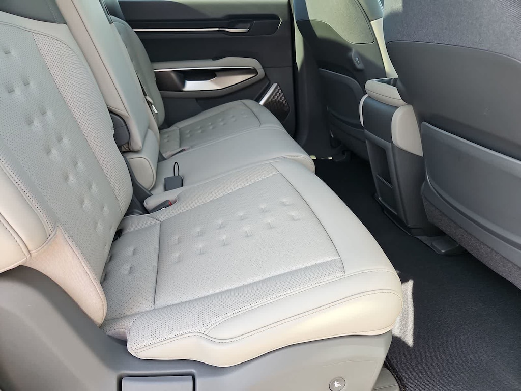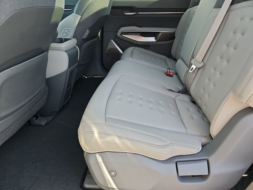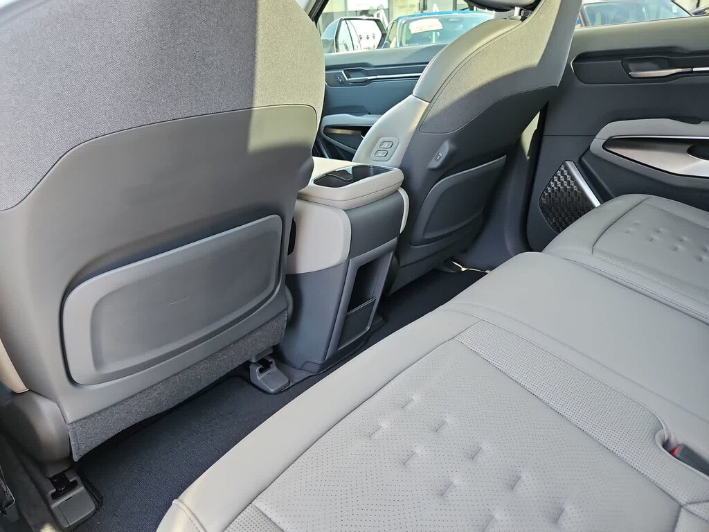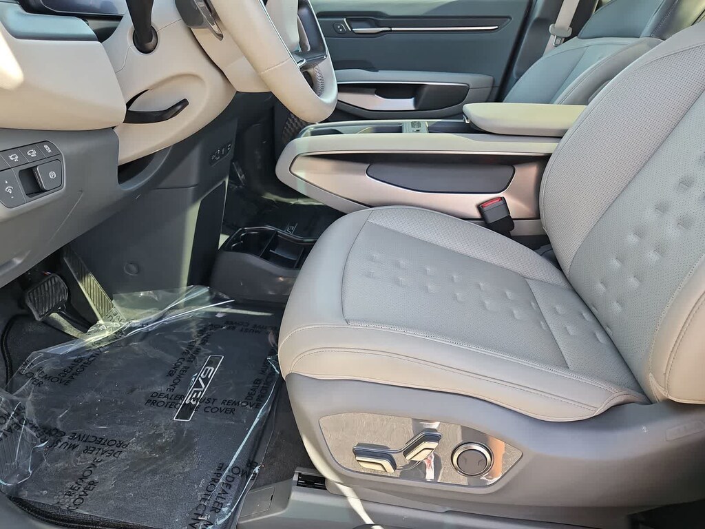 Our sophisticated One Owner, Accident Free 2024 Kia EV9 Wind in Iceberg Green makes electric driving a breeze! Motivated by Dual Electric Motors providing a combined 379hp to a Single Speed Automatic transmission for quick and capable performance. This All Wheel Drive SUV also boasts a 99.8kWh battery pack, enabling nearly 280 miles of range on a single charge. Charged-up styling is displayed with our EV9s dual sunroofs, hands-free liftgate, LED lighting, low-profile roof rails, auto-extending door handles, matte-black body cladding, and 19-inch black alloy wheels.