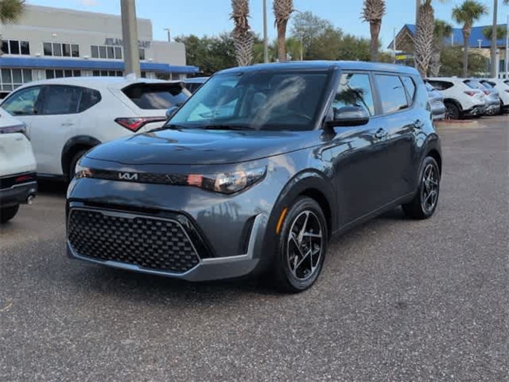 This 2024 Kia Soul EX in Kdt, features 4-Wheel Disc Brakes, 6 Speakers, 6.5J x 17 Alloy Wheels, ABS brakes, Air Conditioning, Alloy wheels, AM/FM radio: SiriusXM, Apple CarPlay & Android Auto, Auto High-beam Headlights, Automatic temperature control, Brake assist, Bumpers: body-color, Cargo Tray Seatback Up, Carpeted Floor Mats, Compass, Delay-off headlights, Driver door bin, Driver vanity mirror, Dual front impact airbags, Dual front side impact airbags, Electronic Stability Control, Emergency communication system, Exterior Parking Camera Rear, Front anti-roll bar, Front Bucket Seats, Front Center Armrest, Front dual zone A/C, Front reading lights, Front wheel independent suspension, Fully automatic headlights, Heated door mirrors, Heated Front Bucket Seats, Heated front seats, Illuminated entry, Leather Shift Knob, Leather steering wheel, Low tire pressure warning, Navigation System, Occupant sensing airbag, Outside temperature display, Overhead airbag, Overhead console, Panic alarm, Passenger door bin, Passenger vanity mirror, Power door mirrors, Power driver seat, Power moonroof, Power steering, Power windows, Radio data system, Radio: AM/FM/MP3/HD Audio System, Rear seat center armrest, Rear window defroster, Rear window wiper, Remote keyless entry, Speed control, Speed-sensing steering, Split folding rear seat, Steering wheel mounted audio controls, Tachometer, Telescoping steering wheel, Tilt steering wheel, Traction control, Trip computer, Variably intermittent wipers, and Woven & Tricot Cloth Seat Trim:
