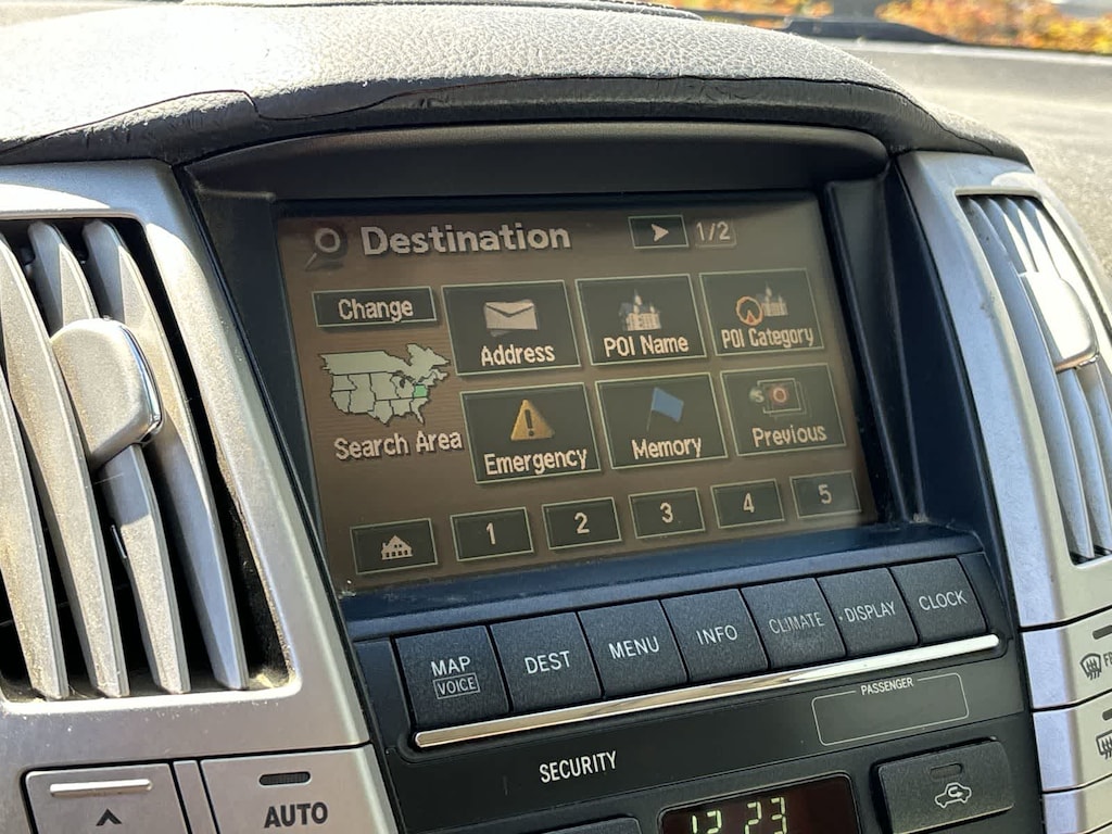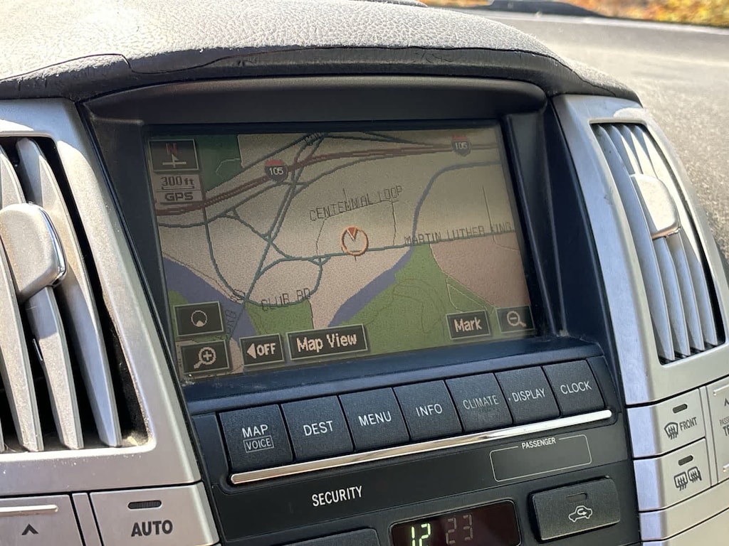 NAVIGATION SYSTEM & MARK LEVINSON AUDIO PKG leather trim interior, pwr tilt/telescopic steering wheel w/memory, roof rails w/rack, illum entry system, one-touch open/close pwr moonroof, HID headlamps w/adaptive front lighting system (AFS), rear backup camera, Bluetooth®, compass, voice activation, REAR SEAT ENTERTAINMENT SYSTEM (2) wireless headphones, HEATED FRONT SEATS W/RAIN-SENSING WIPERS headlamp washers, 18 ALUMINUM ALLOY WHEELS 235/55R18 all-season tires, full-size spare. Lexus RX 330 with Flint Mica exterior and STERLING interior features a V6 Cylinder Engine with 230 HP at 5600 RPM*.