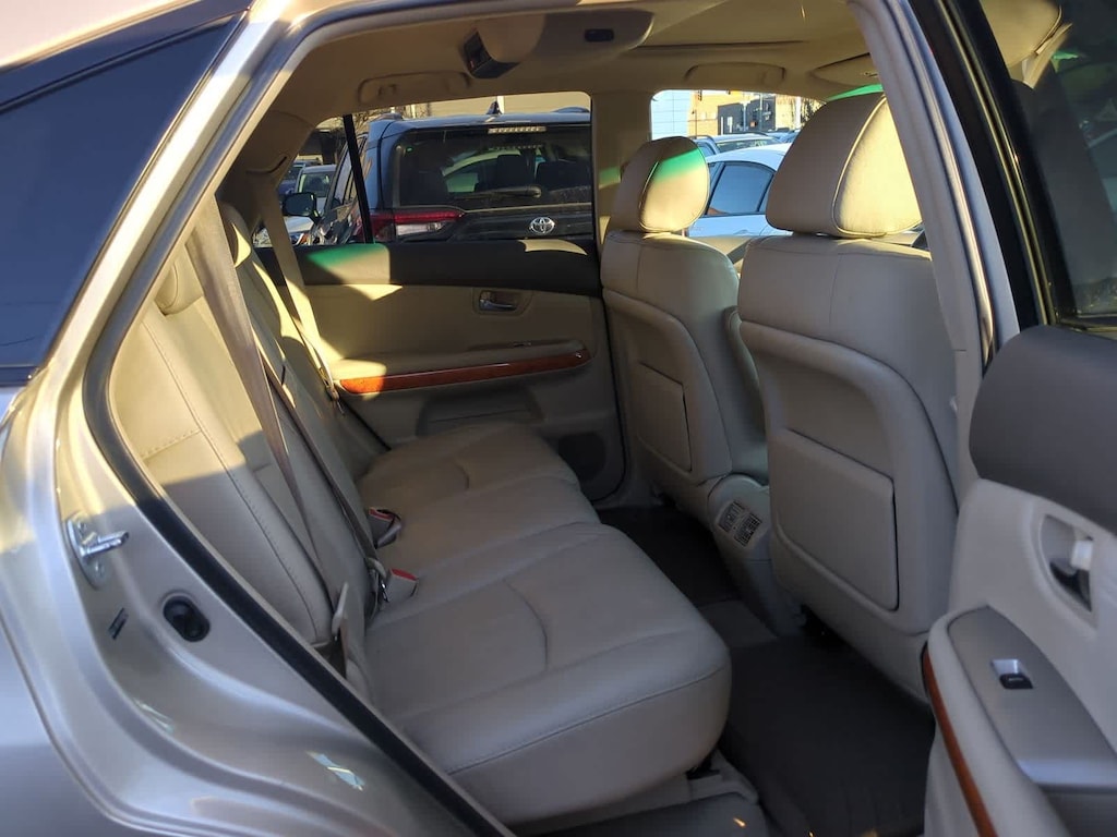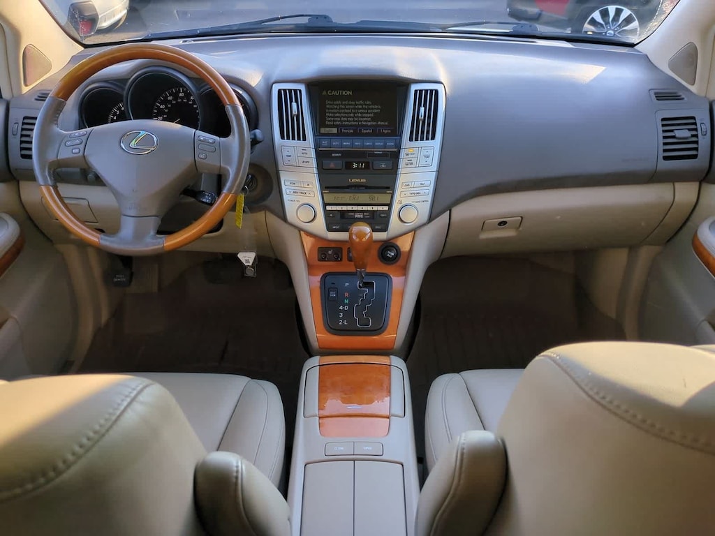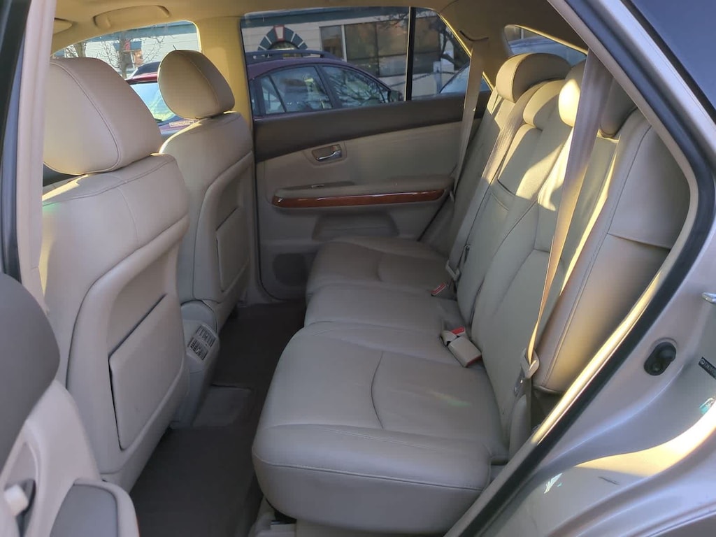 Clean CARFAX. Savannah Metallic 2007 Lexus RX 350 AWD 5-Speed Automatic with Overdrive 3.5L V6 DOHC Dual VVT-i 24V AWD, Ivory Cloth, 17 x 6.5 Aluminum Alloy Wheels, 3.291 Axle Ratio, 4-Wheel Disc Brakes, 8 Speakers, ABS brakes, Air Conditioning, Alloy wheels, AM/FM radio, Auto-dimming door mirrors, Auto-dimming Rear-View mirror, Automatic temperature control, Bodyside moldings, Brake assist, Bucket Seats, Bumpers: body-color, CD player, Compass, Delay-off headlights, Driver door bin, Driver vanity mirror, Drivers Seat Mounted Armrest, Dual front impact airbags, Dual front side impact airbags, Electronic Stability Control, Fabric Seat Trim, Four wheel independent suspension, Front anti-roll bar, Front Bucket Seats, Front dual zone A/C, Front fog lights, Front reading lights, Fully automatic headlights, Garage door transmitter: HomeLink, Genuine wood console insert, Genuine wood door panel insert, Heated door mirrors, Illuminated entry, Knee airbag, Leather Shift Knob, Leather steering wheel, Lexus Premium Sound System, Low tire pressure warning, Occupant sensing airbag, Outside temperature display, Overhead airbag, Overhead console, Panic alarm, Passenger door bin, Passenger seat mounted armrest, Passenger vanity mirror, Power door mirrors, Power driver seat, Power Liftgate, Power passenger seat, Power steering, Power windows, Radio data system, Rear anti-roll bar, Rear seat center armrest, Rear window defroster, Rear window wiper, Remote keyless entry, Security system, Speed control, Speed-sensing steering, Split folding rear seat, Spoiler, Steering wheel mounted audio controls, Tachometer, Tilt steering wheel, Traction control, Trip computer, Variably intermittent wipers, AWD, Ivory Cloth.