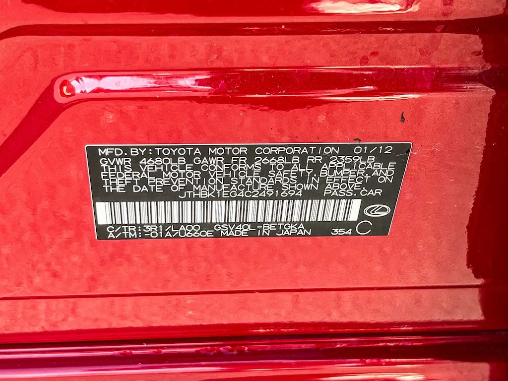 Lexus of Sacramento is pleased to present for sale this stunning 2012 Lexus ES 350 as part of our hand-selected pre-owned lineup. This gorgeous vehicle is finished in the Matador Red Mica exterior paint and Parchment interior. Other factory options include: Parking Sensors, Non-Smoker, Navigation / GPS, Backup Camera, Heated Seats, Sunroof/Moonroof, Leather Seats, Bluetooth, Alloy Wheels.