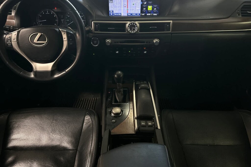 Features a, GS 350 trim. Heated Leather Seats,Back-Up Camera, Auto-Off Headlights, Keyless Start Sunroof, Rear Head Air Bag, Side Head Air Bag, Remote Trunk Release, Child Safety Locks,, 18 Split 5-Spoke Aluminum Alloy Wheels, Heated/Ventilated Front Seats, Intuitive Park Assist (IPA), Navigation System, Passenger door bin, Power Rear Sunshade, Premium Package, Rain Sensing Wipers. 3.5L V6 DOHC 24V 6-Speed Automatic with Sequential Shift RWD