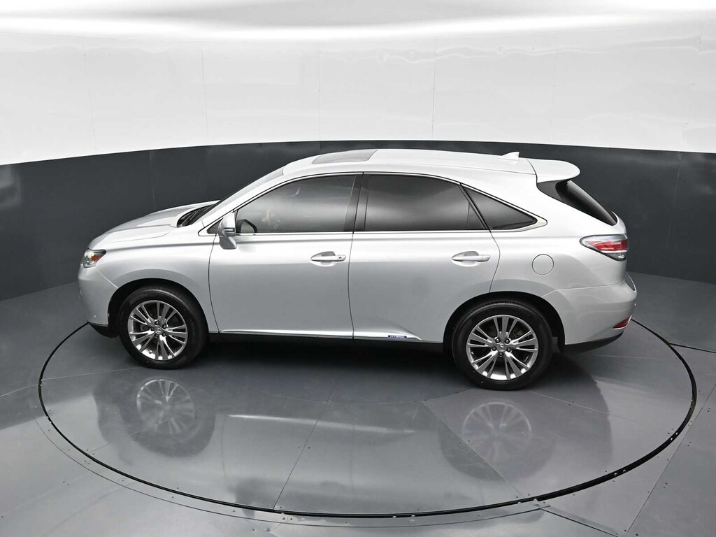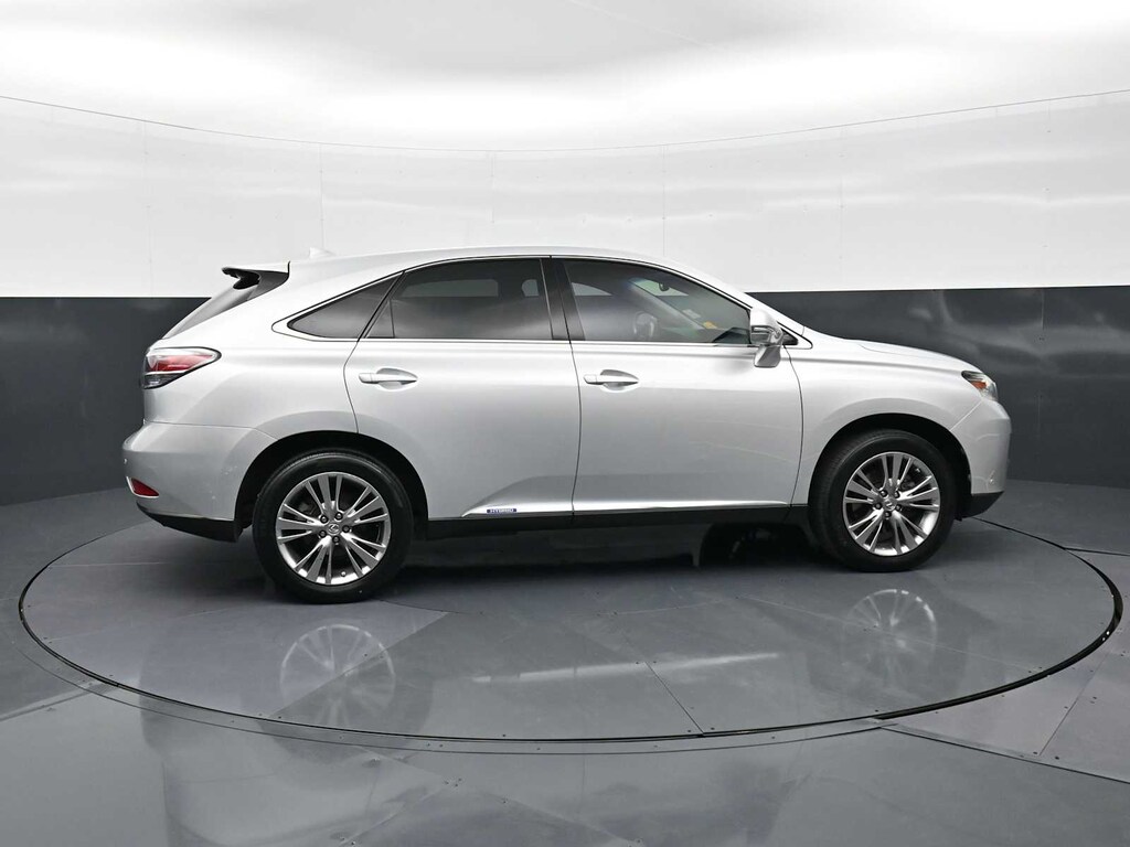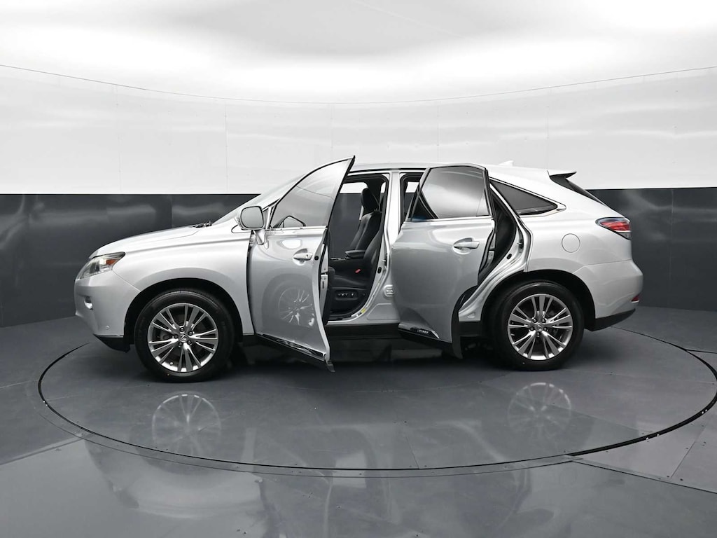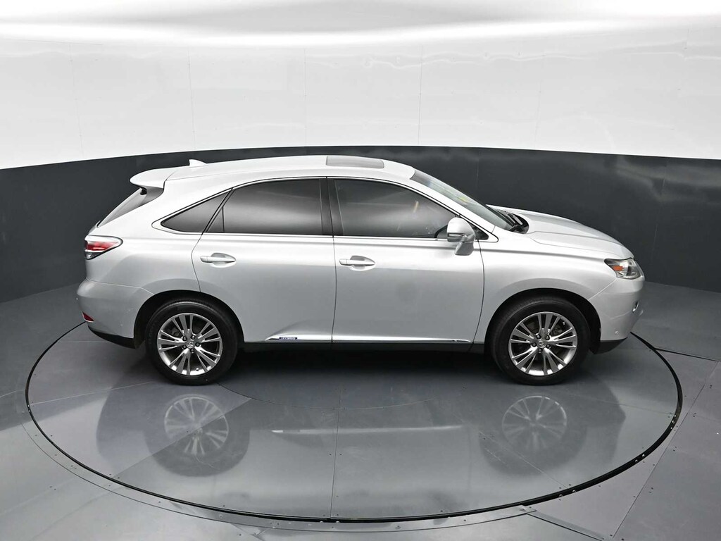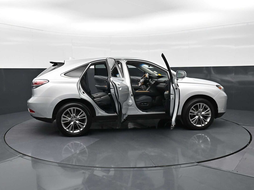 PREMIUM PKG W/BAMBOO INTERIOR & BLIND SPOT MONITOR Bamboo Interior Trim, Driver Seat/Steering/Mirror Memory - 3 Settings, One-Touch Open/Close Moonroof, tilt-and-slide, Power-Folding Electrochromic Outside Mirrors, Rear Armrest Storage w/Lid, Blind Spot Monitoring Lane Change Assist, NAVIGATION SYSTEM remote touch navigation controller, HDD Navigation System w/Advanced Voice Command, Generation 7, backup monitor and casual-language voice recognition system, Lexus Enform 2.0 w/Safety Connect, automatic collision notification, stolen vehicle location, emergency assist button (SOS), enhanced roadside assistance, destination assist, eDestination and enform application suite ( included), SiriusXM NavTraffic/NavWeather, sports, stocks and gas prices, HD Radio w/iTunes Tagging, Lexus Insider, WHEELS: 19 X 7.5 TRIPLE-SPLIT 5-SPOKE ALUMINUM Tires: P235/55VR19 AS, HEATED & VENTILATED FRONT SEATS, INTUITIVE PARKING ASSIST. Lexus RX 450h with Silver Lining Metallic exterior and BLACK interior features a V6 Cylinder Engine with 295 HP at 6000 RPM*.