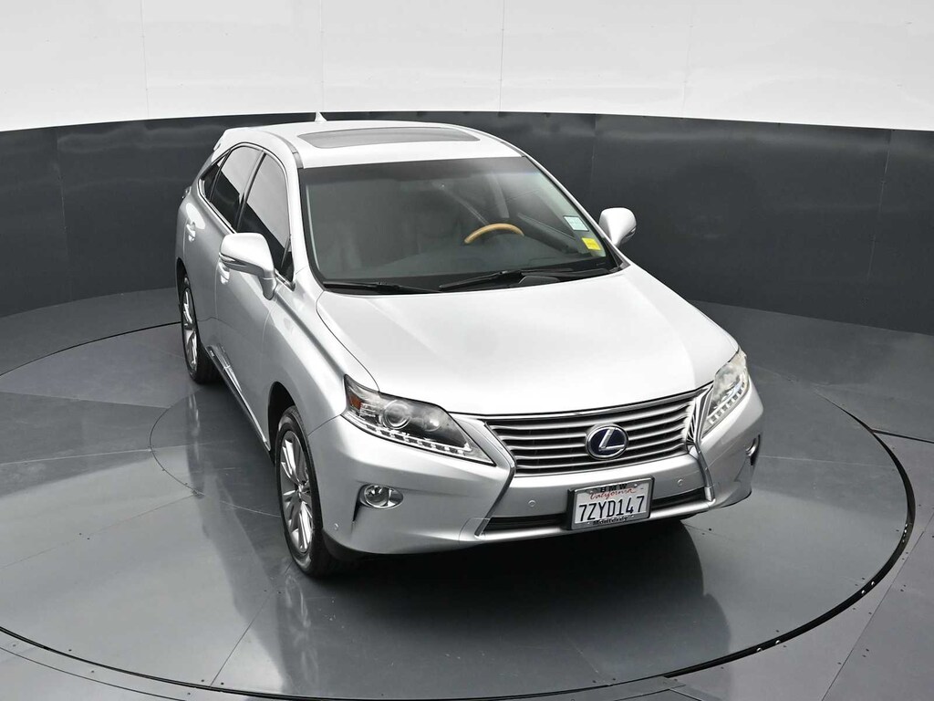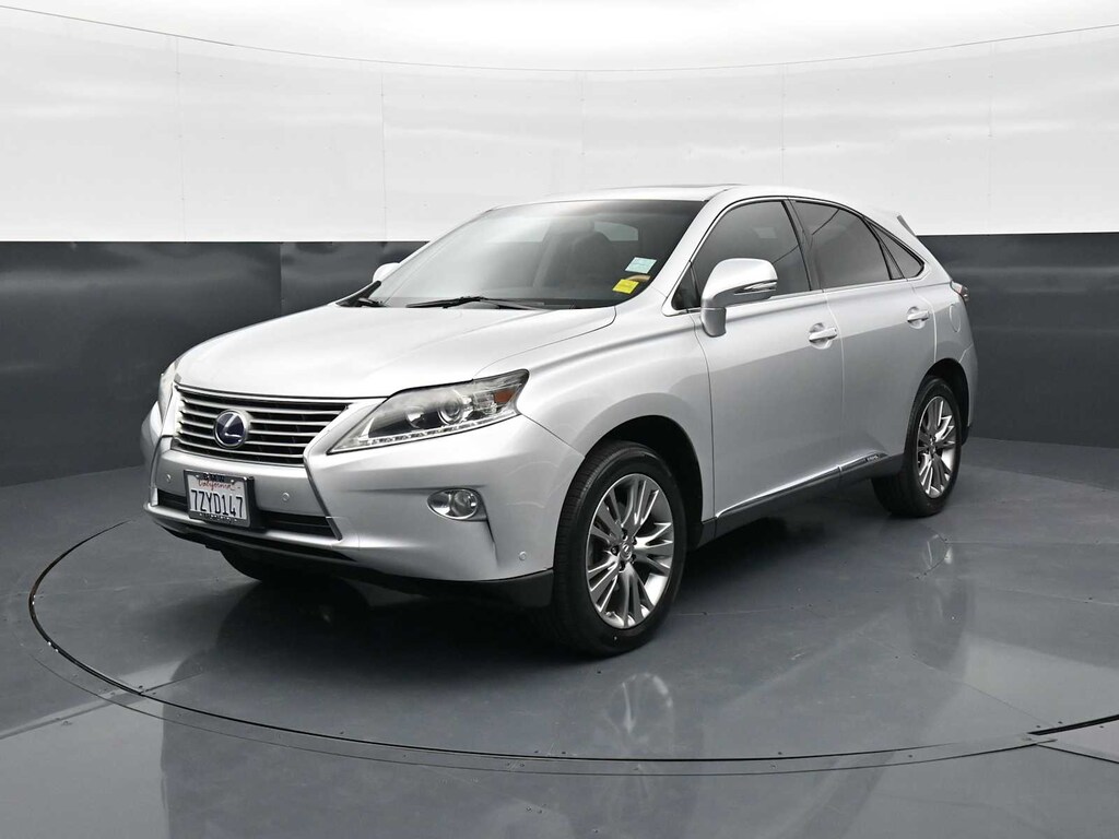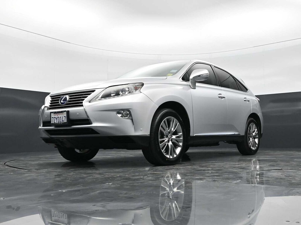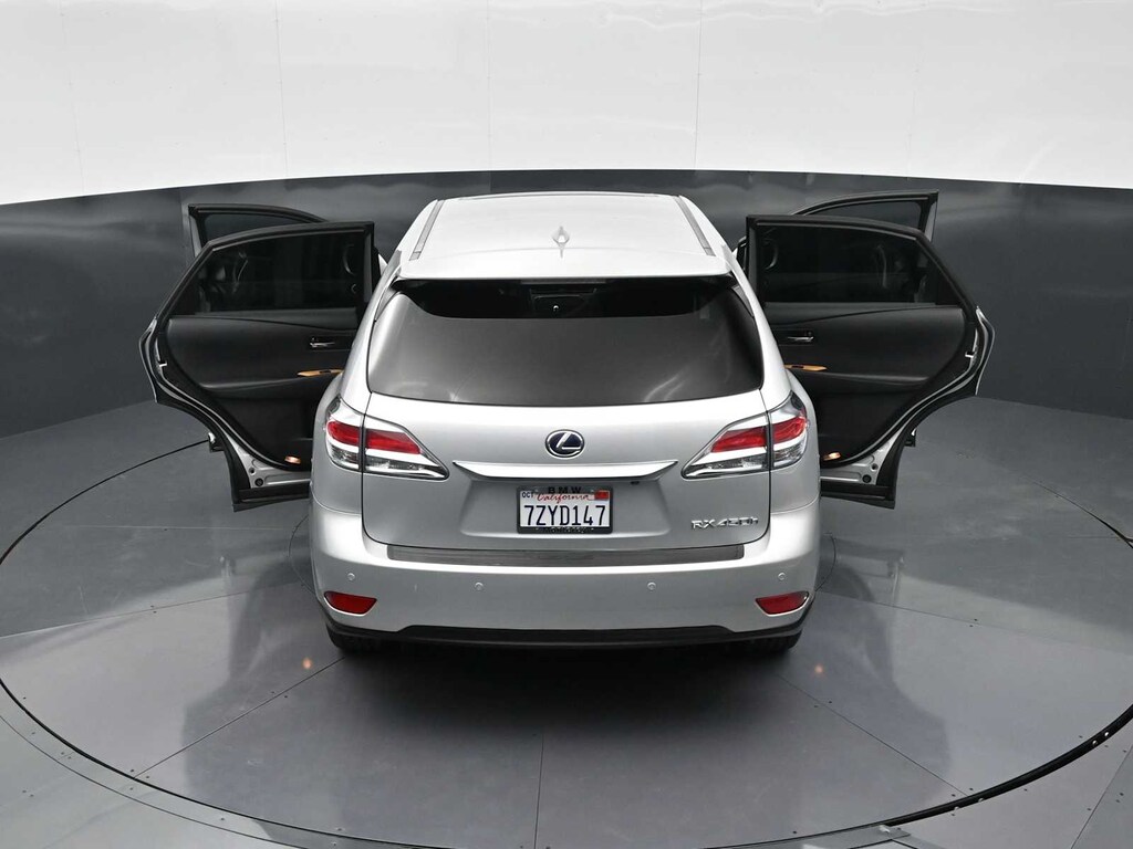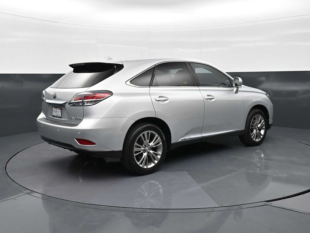 PREMIUM PKG W/BAMBOO INTERIOR & BLIND SPOT MONITOR Bamboo Interior Trim, Driver Seat/Steering/Mirror Memory - 3 Settings, One-Touch Open/Close Moonroof, tilt-and-slide, Power-Folding Electrochromic Outside Mirrors, Rear Armrest Storage w/Lid, Blind Spot Monitoring Lane Change Assist, NAVIGATION SYSTEM remote touch navigation controller, HDD Navigation System w/Advanced Voice Command, Generation 7, backup monitor and casual-language voice recognition system, Lexus Enform 2.0 w/Safety Connect, automatic collision notification, stolen vehicle location, emergency assist button (SOS), enhanced roadside assistance, destination assist, eDestination and enform application suite ( included), SiriusXM NavTraffic/NavWeather, sports, stocks and gas prices, HD Radio w/iTunes Tagging, Lexus Insider, WHEELS: 19 X 7.5 TRIPLE-SPLIT 5-SPOKE ALUMINUM Tires: P235/55VR19 AS, HEATED & VENTILATED FRONT SEATS, INTUITIVE PARKING ASSIST. Lexus RX 450h with Silver Lining Metallic exterior and BLACK interior features a V6 Cylinder Engine with 295 HP at 6000 RPM*.