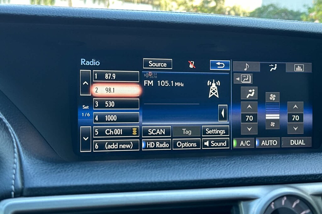F SPORT PACKAGE F Sport badging, larger front brakes w/high-friction pads, aluminum pedals and Variable Gear Ratio Steering (VGRS), Temp Spare Aluminum Wheel, T145/70D18, Black Headliner, Striated Aluminum Interior Trim, F Sport Door Scuff Plates, Climate Concierge, F Sport Mesh Front Grille Inserts, Power Rear Sunshade, Perforated Leather Sport Steering Wheel, Wheels: 19 Split 5-Spoke, Tires: P235/40R19 Fr & P265/35R19 Rr Summer, F Sport Front Bumper & Rear Lower Valence, Rear Lip Spoiler, Rain Sensing Wipers, Heated/Ventilated Front Seats, Front Sport Seats, 16-way power driver seat w/power side bolsters, thigh support, 4-way lumbar and memory, F-Sport Tuned Adaptive Variable Suspension (AVS), sport S+ mode, LEXUS HDD NAVIGATION SYSTEM 12.3 high resolution screen, Lexus insider, advanced voice command casual-language voice recognition system, Lexus Enform App Suite (subscription free): Bing, Yelp, iHeartRadio, Facebook Places, Movietickets.com, OpenTable, Pandora, Slacker, stocks, fuel prices and sports; and Lexus Enform Destination Services: destination assist and eDestination ( included), MARK LEVINSON PREMIUM SURROUND SOUND AUDIO SYSTEM 17 Green Edge speakers, Class D digital amplifier w/ultra-low crossover distortion, 835 watts of continuous power at less than 0.1% Total Harmonic Distortion (THD), 7.1-channel speaker architecture, DVD audio/video capability and Clari-Fi technology, BLIND SPOT MONITOR Rear Cross Traffic Alert (RCTA), Power-Folding Exterior Mirrors, INTUITIVE PARK ASSIST (IPA).