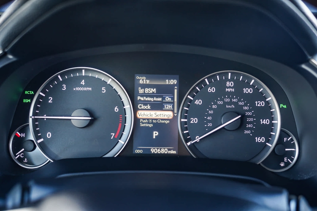 Black Artificial Leather, 3.329 Axle Ratio, 4-Wheel Disc Brakes, 9 Speakers, ABS brakes, Air Conditioning, Alloy wheels, AM/FM radio: SiriusXM, Anti-whiplash front head restraints, Auto-dimming Rear-View mirror, Automatic temperature control, Brake assist, Bumpers: body-color, CD player, Compass, Delay-off headlights, Driver door bin, Driver vanity mirror, Dual front impact airbags, Dual front side impact airbags, Electronic Stability Control, Exterior Parking Camera Rear, Four wheel independent suspension, Front anti-roll bar, Front Bucket Seats, Front Center Armrest, Front dual zone A/C, Front fog lights, Front reading lights, Fully automatic headlights, Garage door transmitter: HomeLink, Heated door mirrors, Illuminated entry, Knee airbag, Leather Shift Knob, Leather steering wheel, Low tire pressure warning, NuLuxe Seat Trim, Occupant sensing airbag, Outside temperature display, Overhead airbag, Overhead console, Panic alarm, Passenger door bin, Passenger vanity mirror, Power door mirrors, Power driver seat, Power Liftgate, Power passenger seat, Power steering, Power windows, Radio data system, Radio: AM/FM/CD Lexus Display Audio, Rear anti-roll bar, Rear reading lights, Rear seat center armrest, Rear side impact airbag, Rear window defroster, Rear window wiper, Remote keyless entry, Security system, Speed control, Speed-sensing steering, Split folding rear seat, Spoiler, Steering wheel mounted audio controls, Tachometer, Telescoping steering wheel, Tilt steering wheel, Traction control, Trip computer, Turn signal indicator mirrors, Variably intermittent wipers, and Wheels: 18 x 8 7-Spoke Aluminum. Black Artificial Leather. 3.5L V6 DOHC 24V 8-Speed Automatic FWD