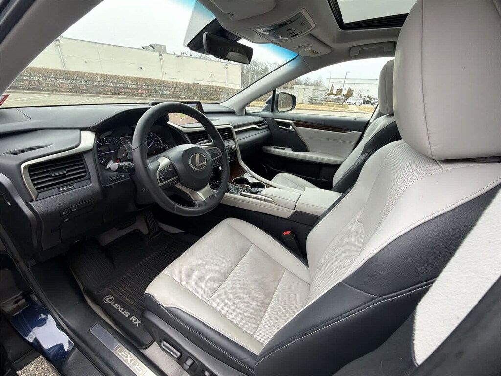 2019 Lexus RX 350 AWD 8-Speed Automatic 3.5L V6 DOHC VVT-i 24V AWD, Parchment w/Semi-Aniline Leather Seat Trim, ABS brakes, Active Cruise Control, Alloy wheels, Compass, Electronic Stability Control, Front dual zone A/C, Heated door mirrors, Illuminated entry, Low tire pressure warning, Power Liftgate, Remote keyless entry, Traction control.