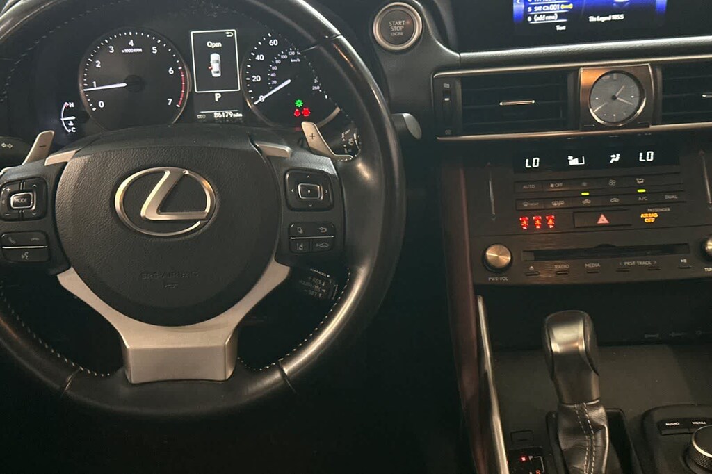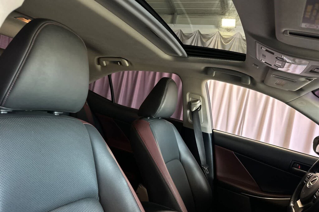 This IS 300 is finished in the Eminent White Pearl exterior paint and Nuance Black NuLuxe interior.