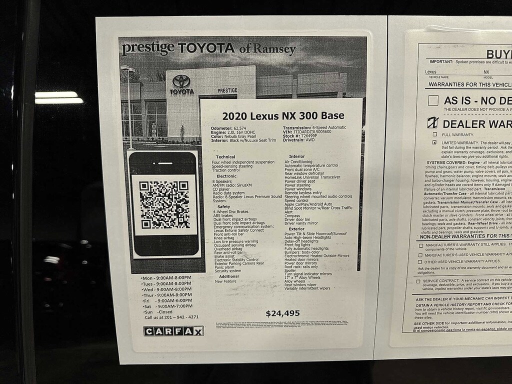 4D Sport Utility, 2.0L 16V DOHC, 6-Speed Automatic, AWD, Nebula Gray Pearl, Blind Spot Monitor w/Rear Cross Traffic Alert, Comfort Package, Electrochromic Heated Outside Mirrors, Electrochromic Inside Rear-View Mirror w/Compass, Heated & Ventilated Front Seats, HomeLink Universal Transceiver, Power Tilt & Slide Moonroof/Sunroof. CARFAX One-Owner. Nebula Gray Pearl 2020 Lexus NX 300 Base AWD 6-Speed Automatic 2.0L 16V DOHC