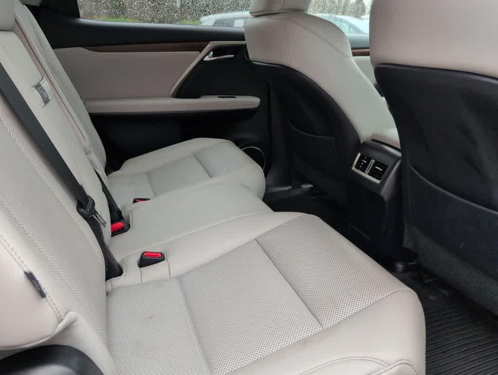 This RX 350L is nicely equipped with AWD, 3.33 Axle Ratio, 3rd row seats: split-bench, 4-Wheel Disc Brakes, 9 Speakers, ABS brakes, Air Conditioning, Alloy wheels, AM/FM radio: SiriusXM, Anti-whiplash front head restraints, Apple CarPlay/Android Auto, Auto High-beam Headlights, Auto-dimming door mirrors, Auto-dimming Rear-View mirror, Automatic temperature control, Brake assist, Bumpers: body-color, CD player, Compass, Delay-off headlights, Driver door bin, Driver vanity mirror, Dual front impact airbags, Dual front side impact airbags, Electronic Stability Control, Emergency communication system: Lexus Enform Safety Connect, Exterior Parking Camera Rear, Four wheel independent suspension, Front anti-roll bar, Front Bucket Seats, Front Center Armrest, Front dual zone A/C, Front reading lights, Fully automatic headlights, Garage door transmitter: HomeLink, Genuine wood console insert, Genuine wood door panel insert, Heated door mirrors, Illuminated entry, Knee airbag, Leather Shift Knob, Leather steering wheel, Low tire pressure warning, NuLuxe Seat Trim, Occupant sensing airbag, Outside temperature display, Overhead airbag, Overhead console, Panic alarm, Passenger door bin, Passenger vanity mirror, Power door mirrors, Power driver seat, Power Liftgate, Power passenger seat, Power steering, Power windows, Radio data system, Radio: AM/FM/CD Lexus Display Audio, Rain sensing wipers, Rear air conditioning, Rear anti-roll bar, Rear reading lights, Rear seat center armrest, Rear side impact airbag, Rear window defroster, Rear window wiper, Reclining 3rd row seat, Remote keyless entry, Roof rack: rails only, Security system, Speed control, Speed-sensing steering, Split folding rear seat, Spoiler, Steering wheel mounted audio controls, Tachometer, Telescoping steering wheel, Tilt steering wheel, Traction control, Trip computer, Turn signal indicator mirrors, Variably intermittent wipers, and Wheels: 18 Split-5-Spoke Alloy. Price does not include licensing costs, registration fees, taxes and dealer doc fee of $899.50 which are to be paid by the consumer.