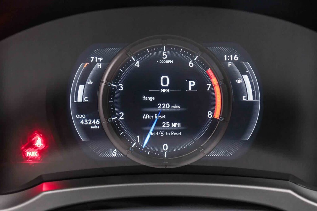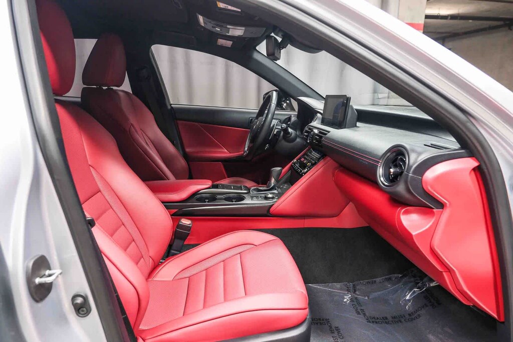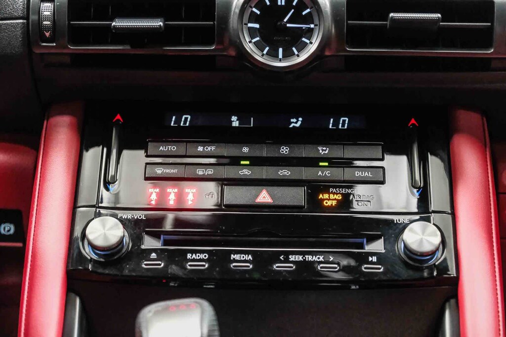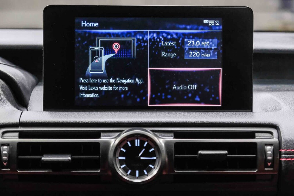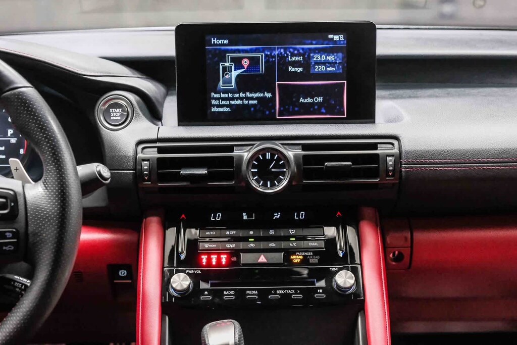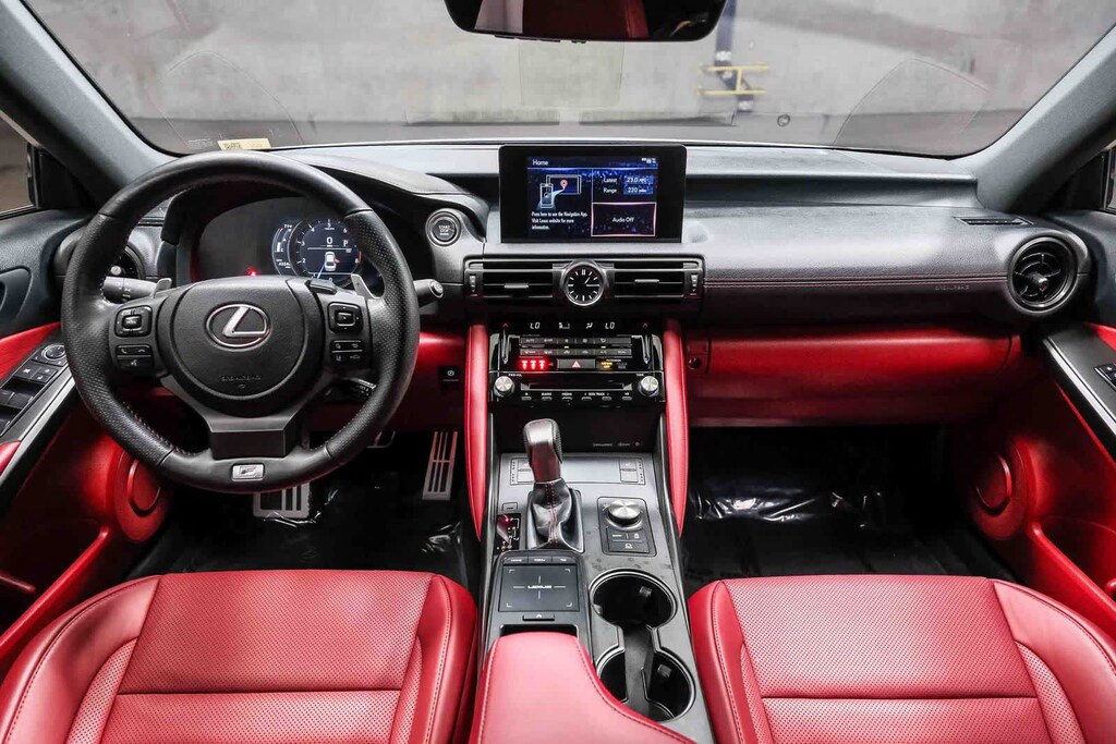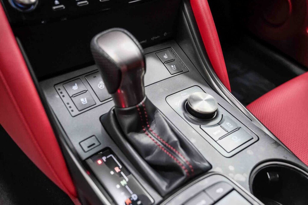 10 Speakers, 19 Wheels, 4-Wheel Disc Brakes, ABS brakes, Air Conditioning, Alloy wheels, AM/FM radio: SiriusXM, Apple CarPlay/Android Auto, Auto High-beam Headlights, Auto-dimming door mirrors, Auto-dimming Rear-View mirror, Automatic temperature control, Brake assist, Bumpers: body-color, CD player, Compass, Delay-off headlights, Driver door bin, Driver vanity mirror, Dual front impact airbags, Dual front side impact airbags, Electronic Stability Control, Emergency communication system: Safety Connect (3-year trial), Exterior Parking Camera Rear, Four wheel independent suspension, Front anti-roll bar, Front Bucket Seats, Front Center Armrest, Front dual zone A/C, Front fog lights, Front reading lights, Fully automatic headlights, Garage door transmitter: HomeLink, Heated & Ventilated F SPORT Seats, Heated door mirrors, Heated front seats, Heated steering wheel, Illuminated entry, Knee airbag, Leather Shift Knob, Low tire pressure warning, Occupant sensing airbag, Outside temperature display, Overhead airbag, Overhead console, Panic alarm, Passenger door bin, Passenger vanity mirror, Perforated NuLuxe Seat Trim, Power door mirrors, Power driver seat, Power passenger seat, Power steering, Power windows, Radio data system, Radio: Multimedia System w/8 Color Touchscreen, Rain sensing wipers, Rear anti-roll bar, Rear reading lights, Rear seat center armrest, Rear side impact airbag, Rear window defroster, Remote keyless entry, Security system, Speed control, Speed-sensing steering, Speed-Sensitive Wipers, Split folding rear seat, Spoiler, Sport steering wheel, Steering wheel mounted audio controls, Tachometer, Telescoping steering wheel, Tilt steering wheel, Traction control, Trip computer, Turn signal indicator mirrors, Variably intermittent wipers, Ventilated front seats.