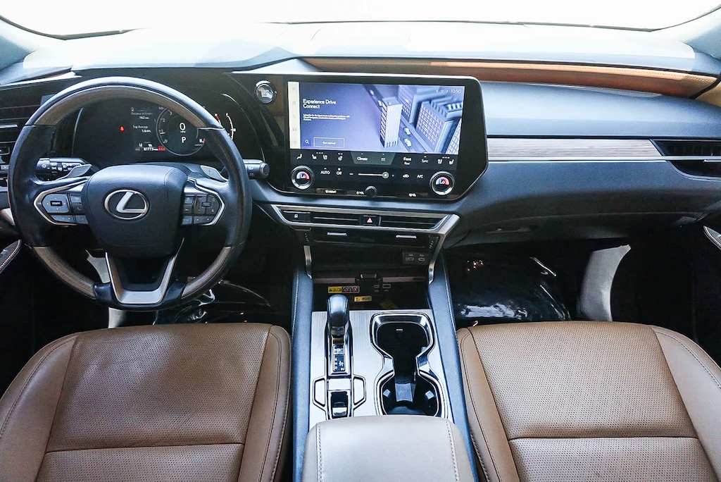 Eminent White Pearl 2023 Lexus RX 350 Premium Plus FWD 8-Speed Automatic 2.4L I4 PDI Turbocharged DOHC 16V LEV3-SULEV30 275hp Local Trade-In with service records, Just Serviced, Extremely Clean Vehicle, Tires in Great Condition, Professionally Detailed, Non-Smoker, Palomino w/Ash Bamboo w/Leather Seat Trim, 8-Way Power Driver & Front Passenger Seat Adjusters, ABS brakes, Active Cruise Control, Alloy wheels, Cold Area Package, Compass, Electronic Stability Control, Finish Plate Door Inner Garnish, Front dual zone A/C, Heated & Ventilated Front Bucket Seats, Heated door mirrors, Heated front seats, Illuminated entry, Leather Seat Trim, Low tire pressure warning, Multi-Color Illuminated Entry System, Panoramic View Monitor w/BSM, Parking Support Alert/Brake, Power Liftgate, Power moonroof, Power Rear Door w/Kick Sensor, Premium Plus Package, Remote keyless entry, Traction control, Wheels: 21 20-Spoke Alloy, Wireless Charger, Wood Steering Wheel w/Paddle & Heater.